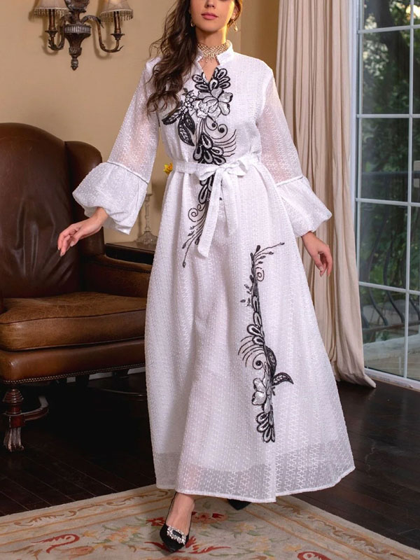 Lantern Sleeve Lace Airy Lace Up Women's Dress