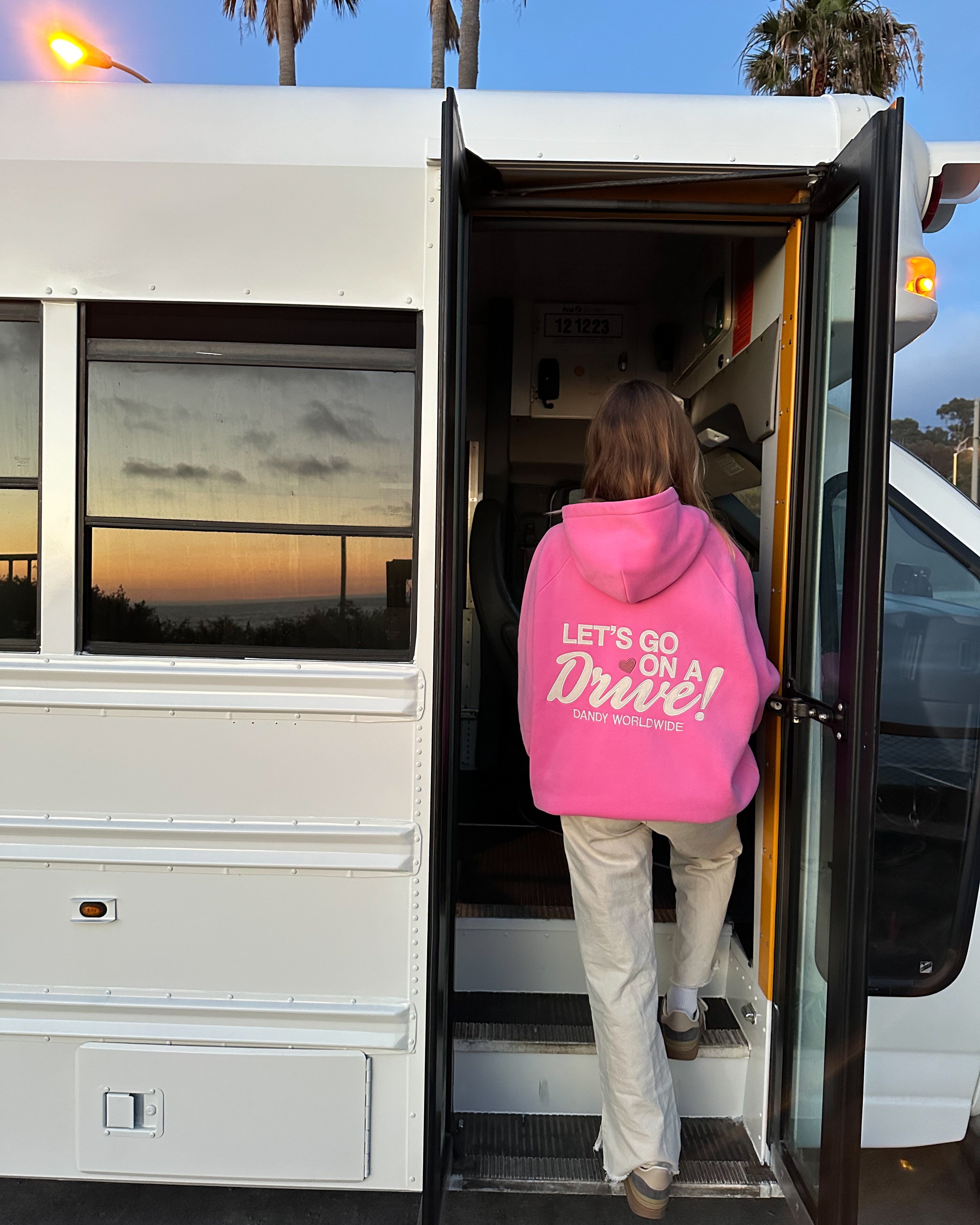 "Let's Go on a Drive" Oversized Lux Hoodie in Pink