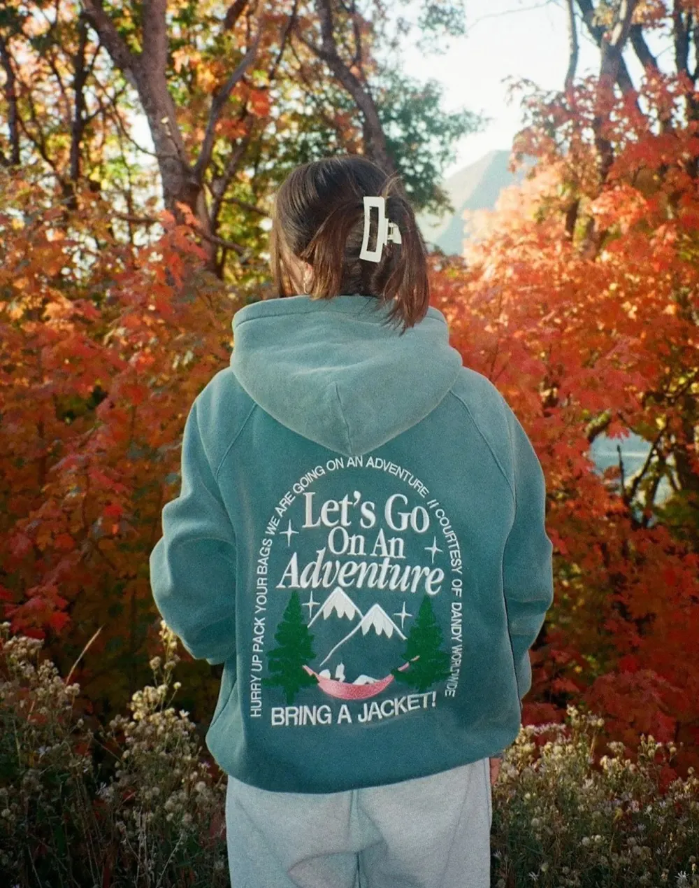 "Let's Go On An Adventure" Oversized Lux Hoodie in Pine Green