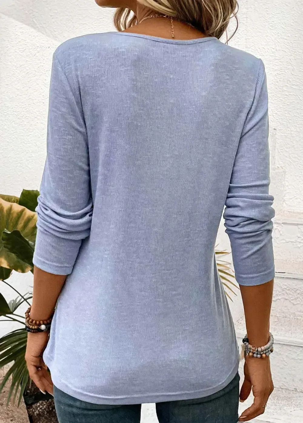 Light Purple Lace Long Sleeve Round Neck Blouse