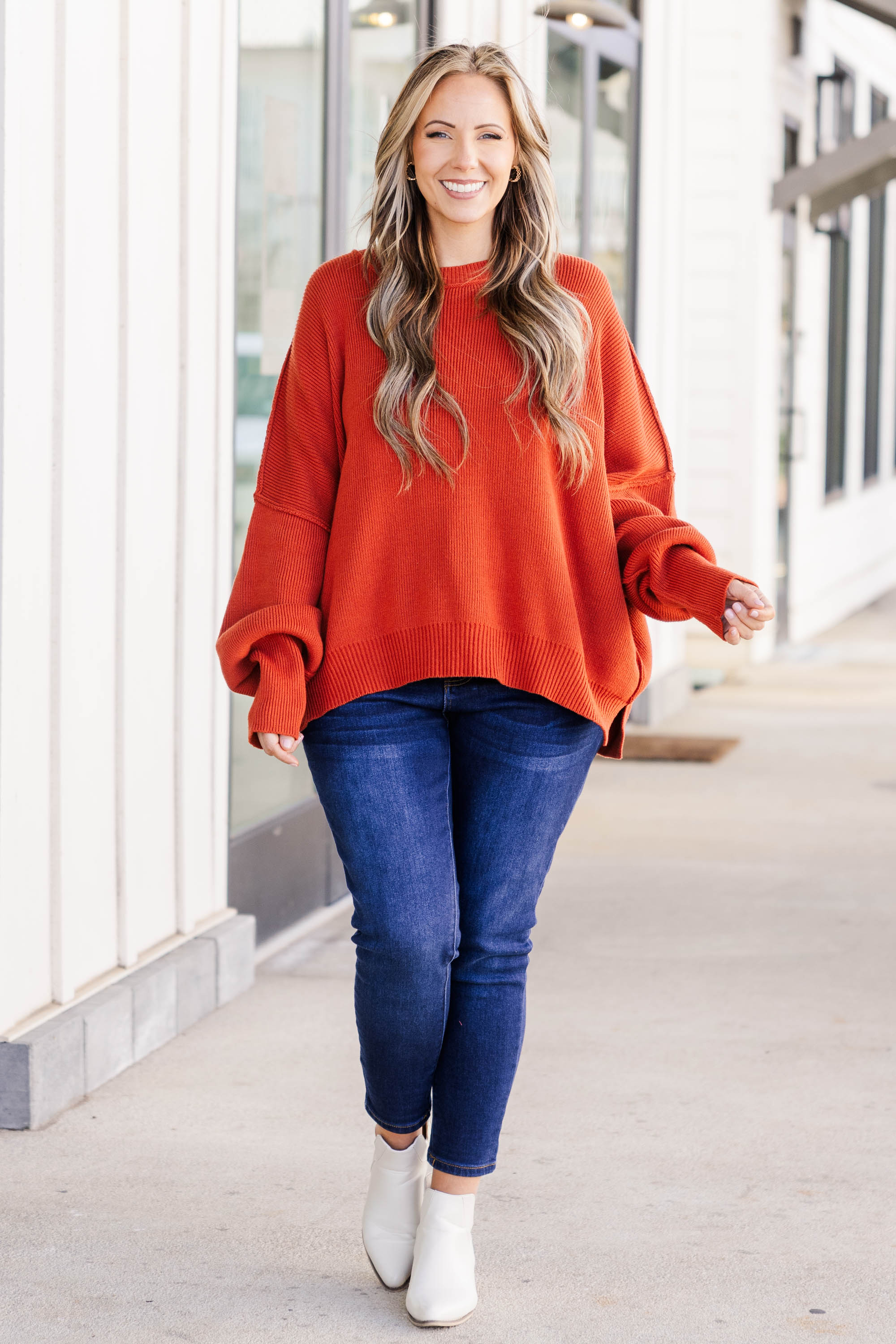 This top is truly magically perfect! The clay color and super comfy material is just that you need in your new favorite sweater! The stretchy, figure flattering fit is great for all day wear! The bubble sleeves are so chic! Pair this sweater with some skinnies or leggings for a classic chic look!