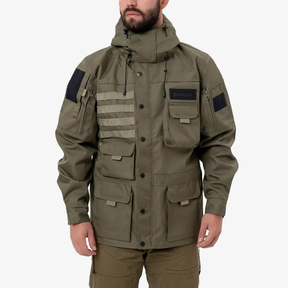 Crafted with 500 denier CORDURA® fabric and reinforced with 1000 denier on the shoulders, cuffs, and elbows, it includes a detachable hood.
