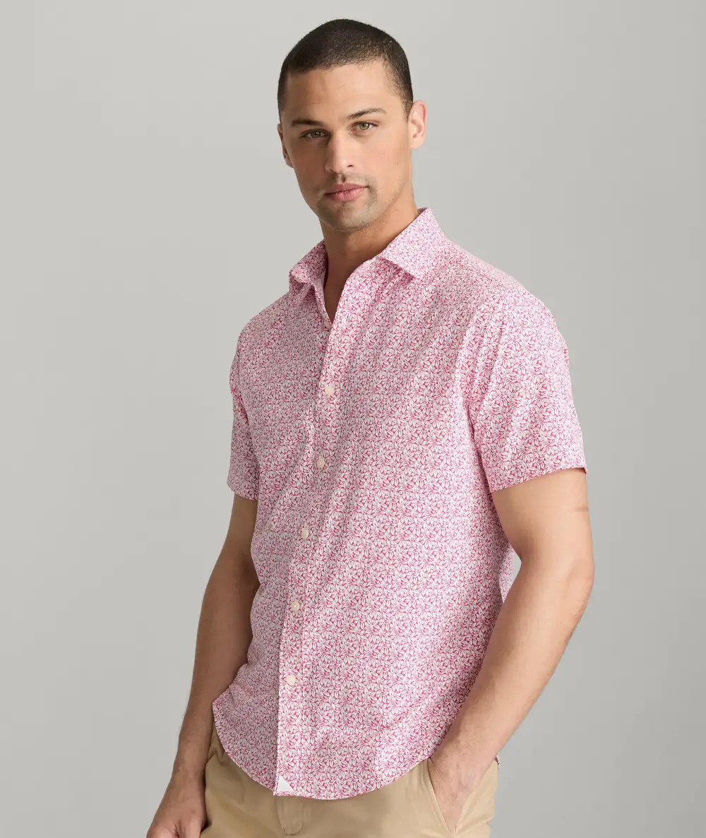 The ultimate shirt does exist—and you’ve found it. Meet the style that does it all: wicks sweat, stretches to your comfort, and resists wrinkling all day. Plus, like all of our shirts, you can even wash and dry at home. It comes in a summer-ready leaf print and short sleeves that are perfect for the warmer weather. And with that just-right untucked length, you’ll always look and feel great. Pair it with our Chino Shorts for a happy hour-inspired look that’ll take you anywhere this season.