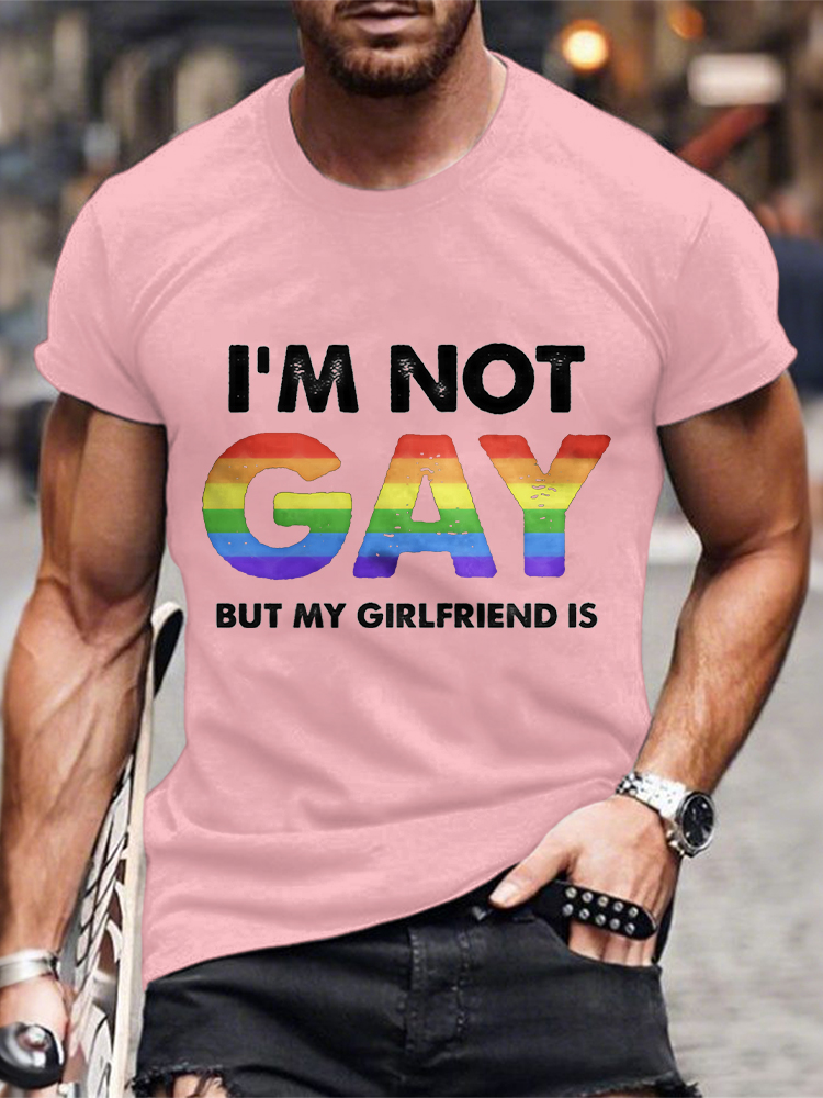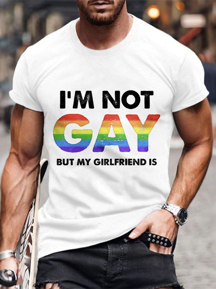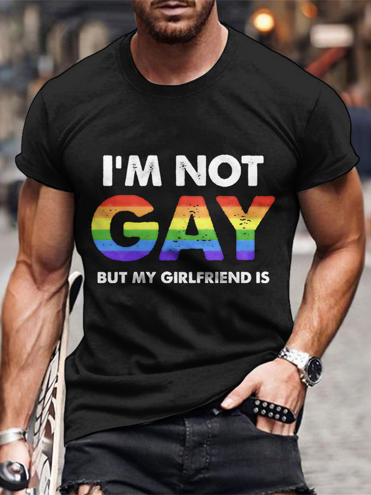 Men'S I'M Not Gay But My Girlfriend Is Print T-Shirt