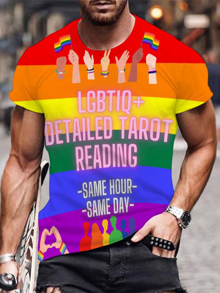 Men's Lgbtiq Oetailed Tarot Reading Same Hour Same Day Print Short Sleeve Round Neck Cotton T-Shirt