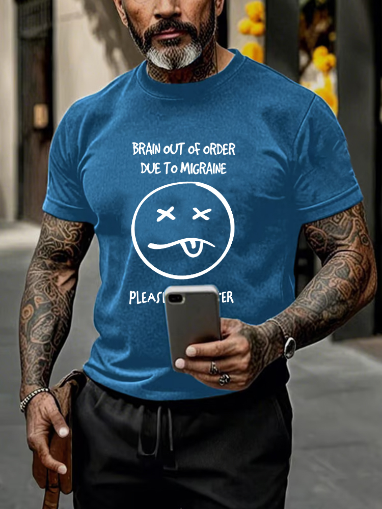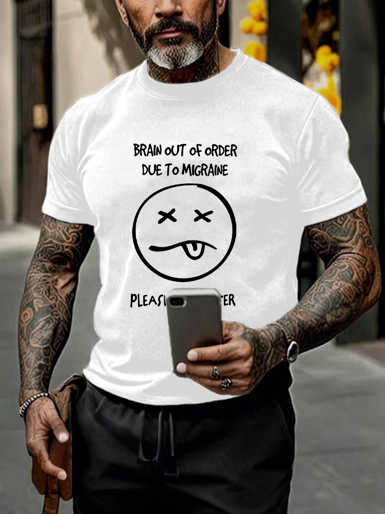 Men'S Round-Neck Short-Sleeved T-Shirt Brain Out Of Order Due To Migraine Prints