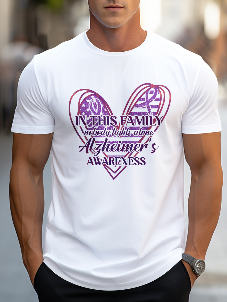 Men'S Round-Neck Short-Sleeved T-Shirt In This Family Nobody Fights Alone Alzheimer'S Awareness Prints