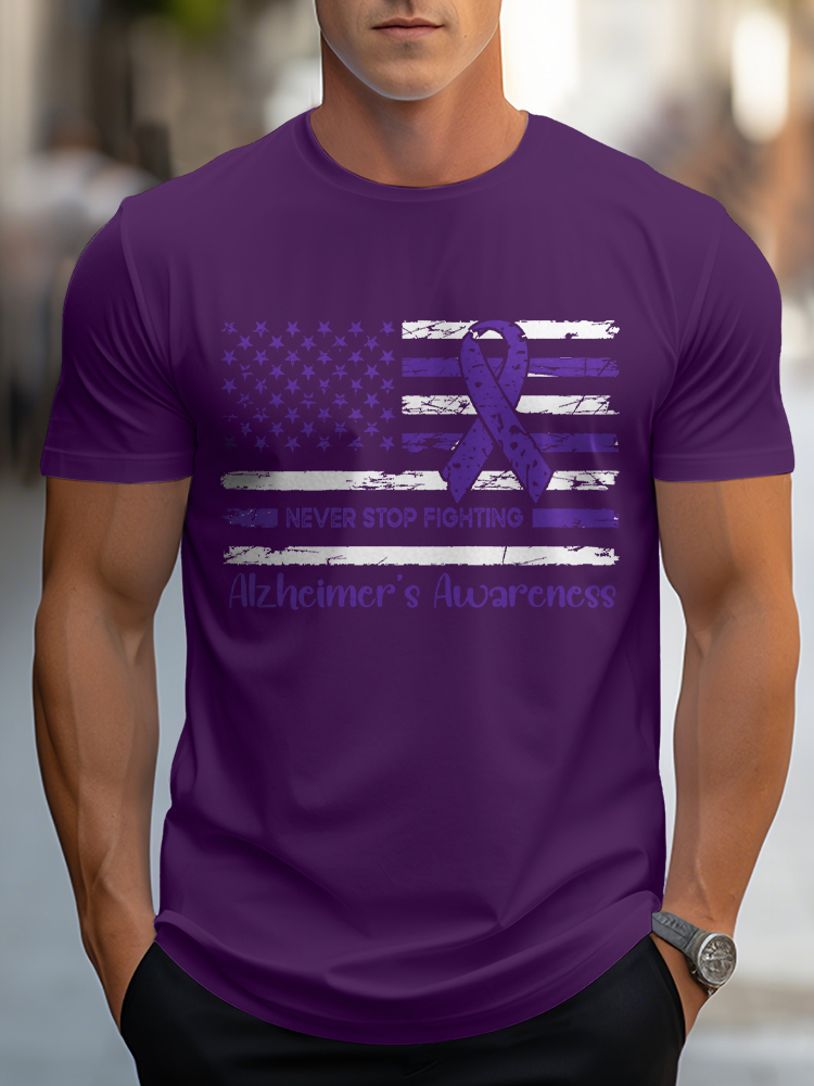 Men'S Round-Neck Short-Sleeved T-Shirt Never Stop Fighting Alzheimer'S Awareness Prints