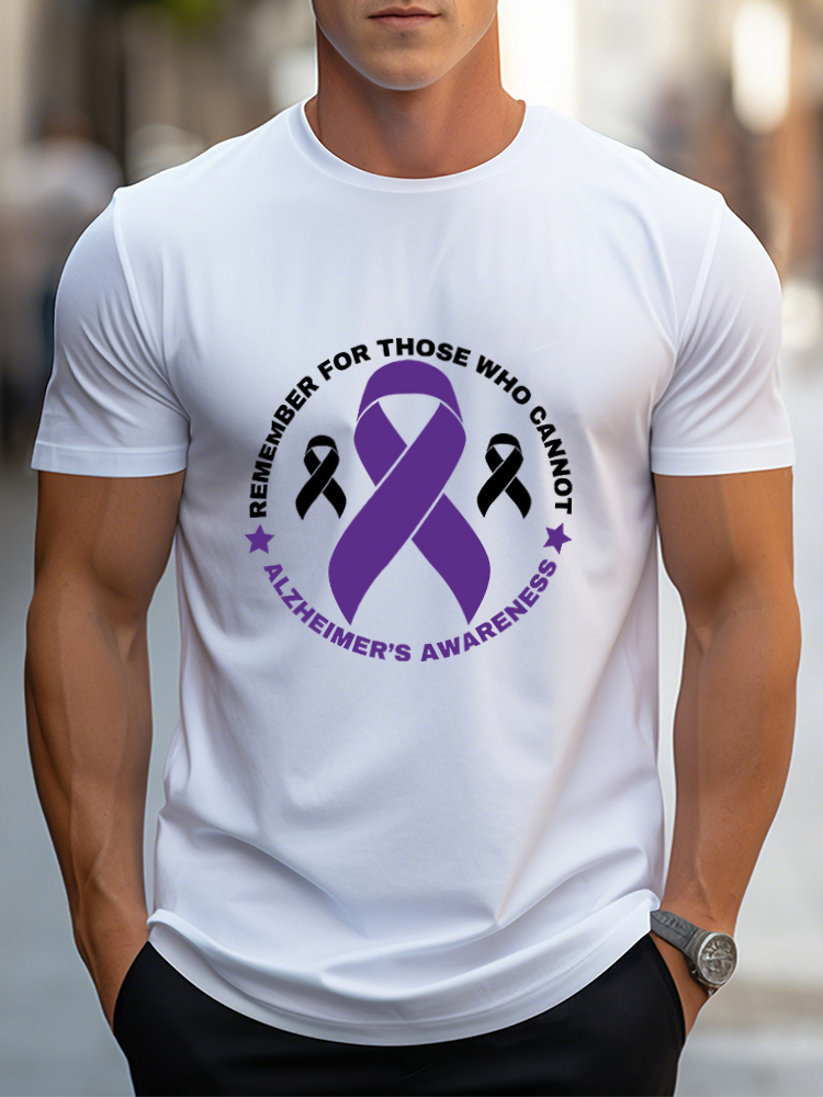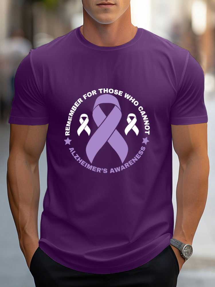 Men'S Round-Neck Short-Sleeved T-Shirt Remember For Those Who Cannot Alzheimer'S Awareness Prints