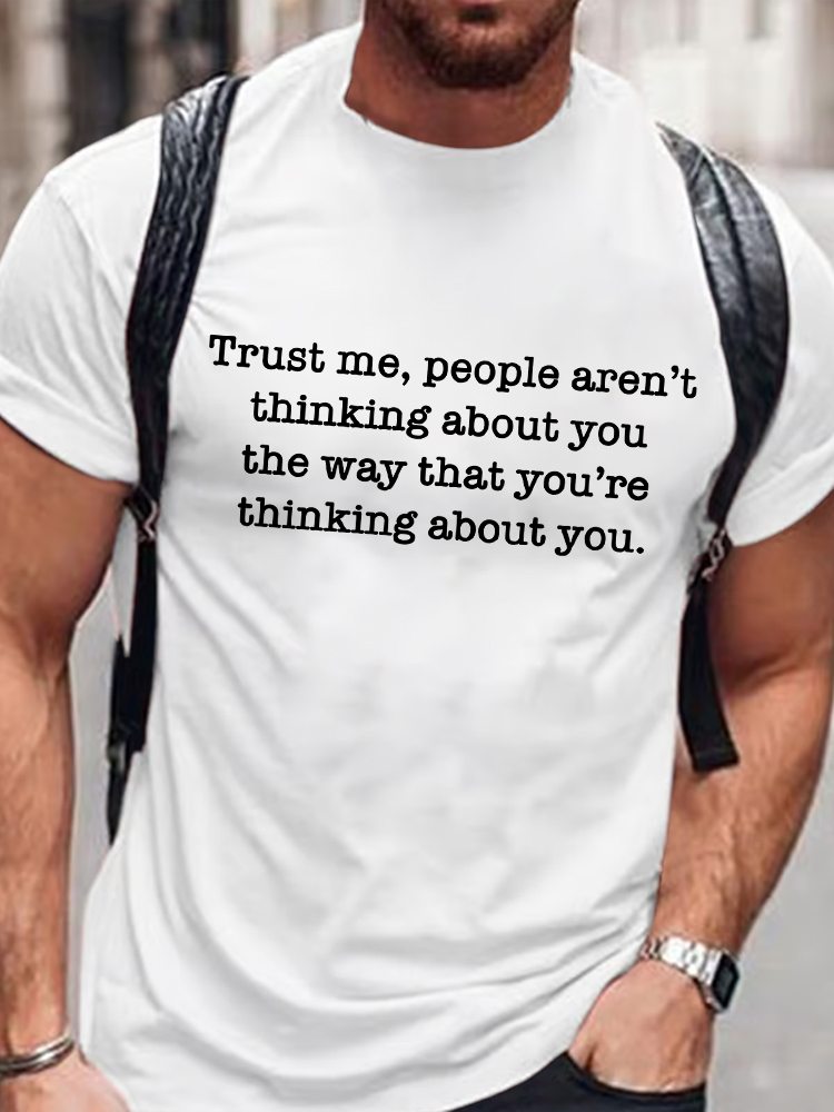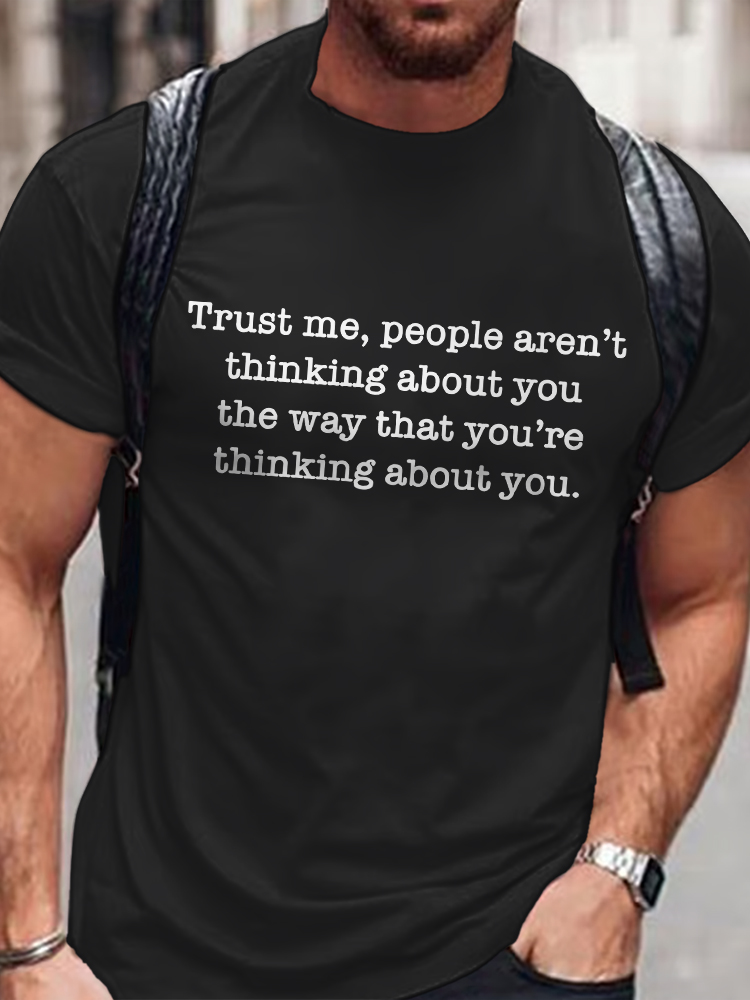 Men'S Round-Neck Short-Sleeved T-Shirt Trust Me, People Aren'T Thinking About You The Way That You'Re Thinking About You Prints