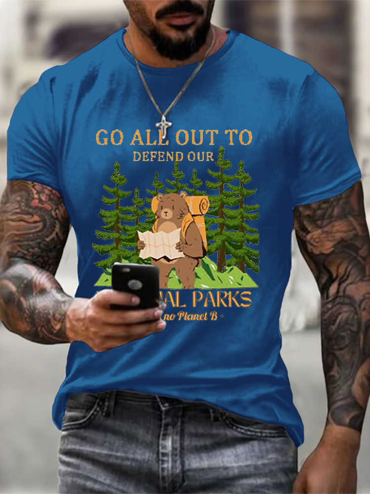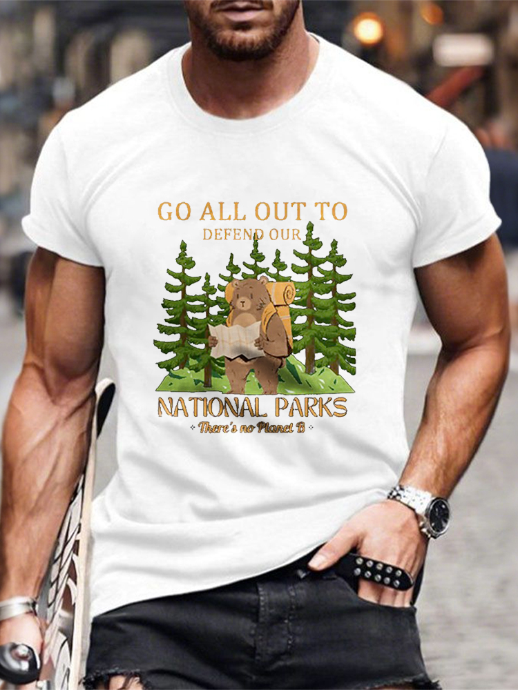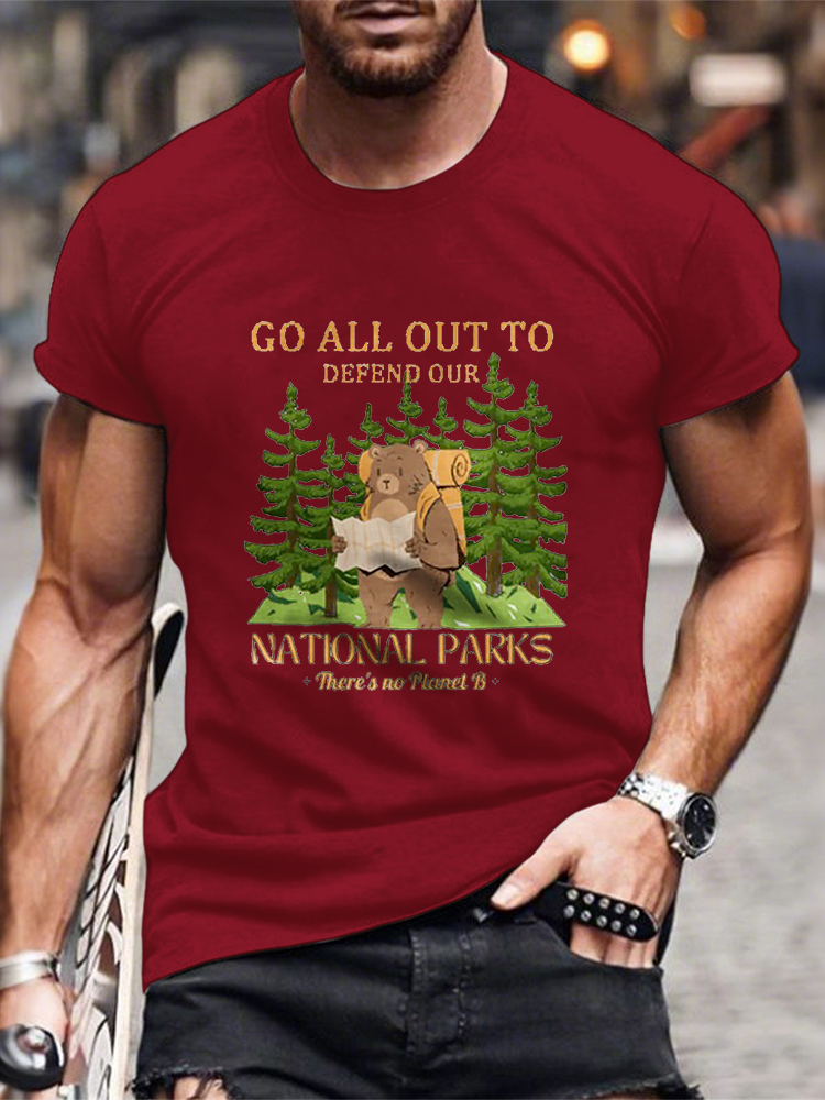 Men'S Round-Neck Short-Sleeved T-Shirt With Go All Out To Defend Our National Parks Prints