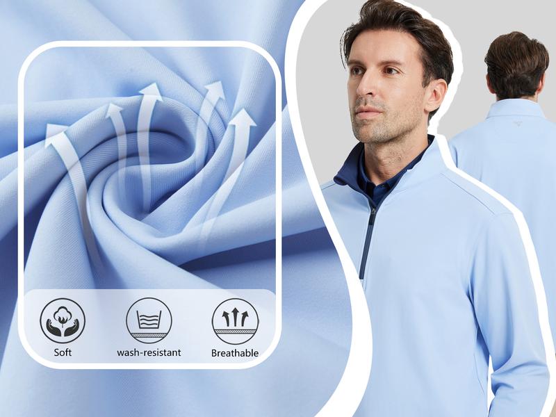 Stylish Design: Sleek 1/4 zipper + stand-up mock neck. Modern look with UV protection, ideal for outdoor activities.