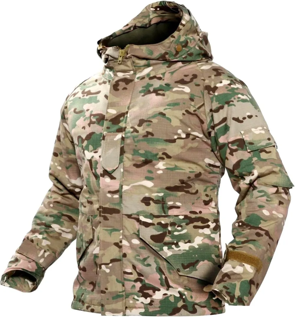 Men's Fleece Lined Soft Shell Jacket Winter Waterproof Hooded Coat Windproof Camo Tactical Jacket