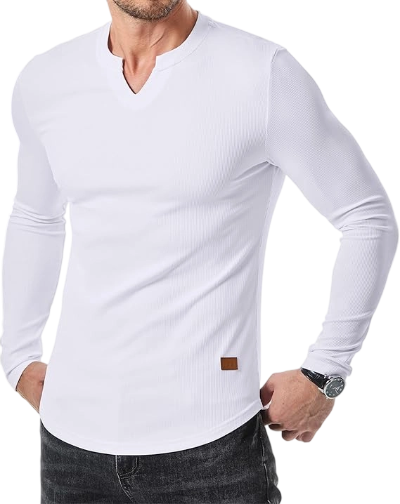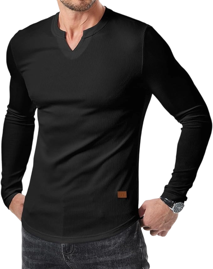 Mens Long Sleeve Muscle T Shirts Casual V-Neck Longline Ribbed Tee Shirts