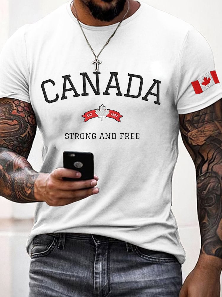 Men'S Retro Canada Strong And Free Printed Casual Crew Neck T-Shirt