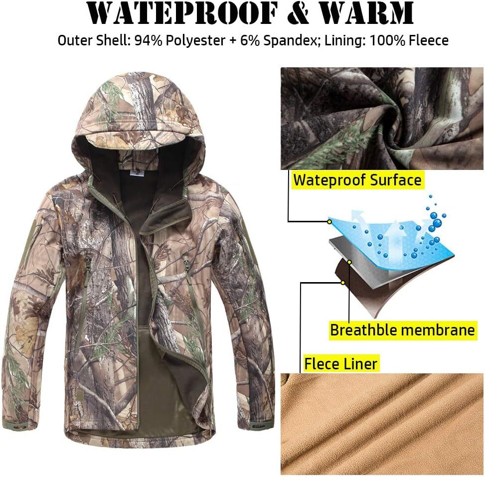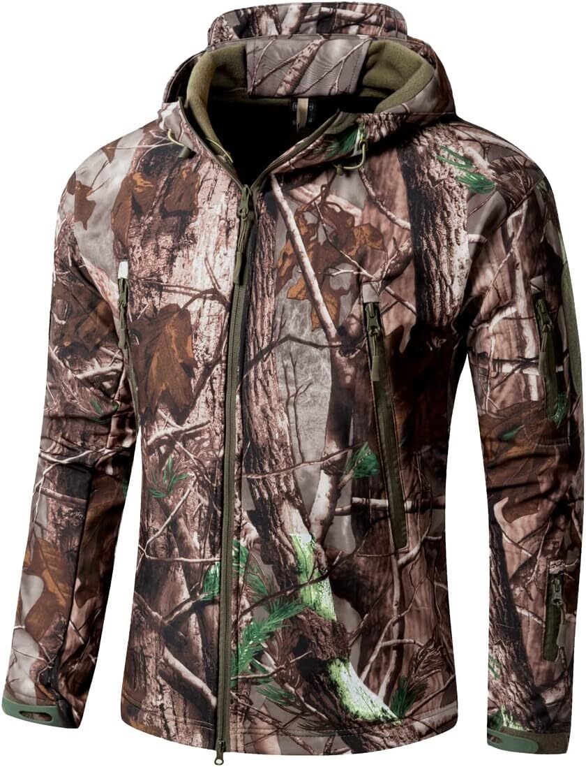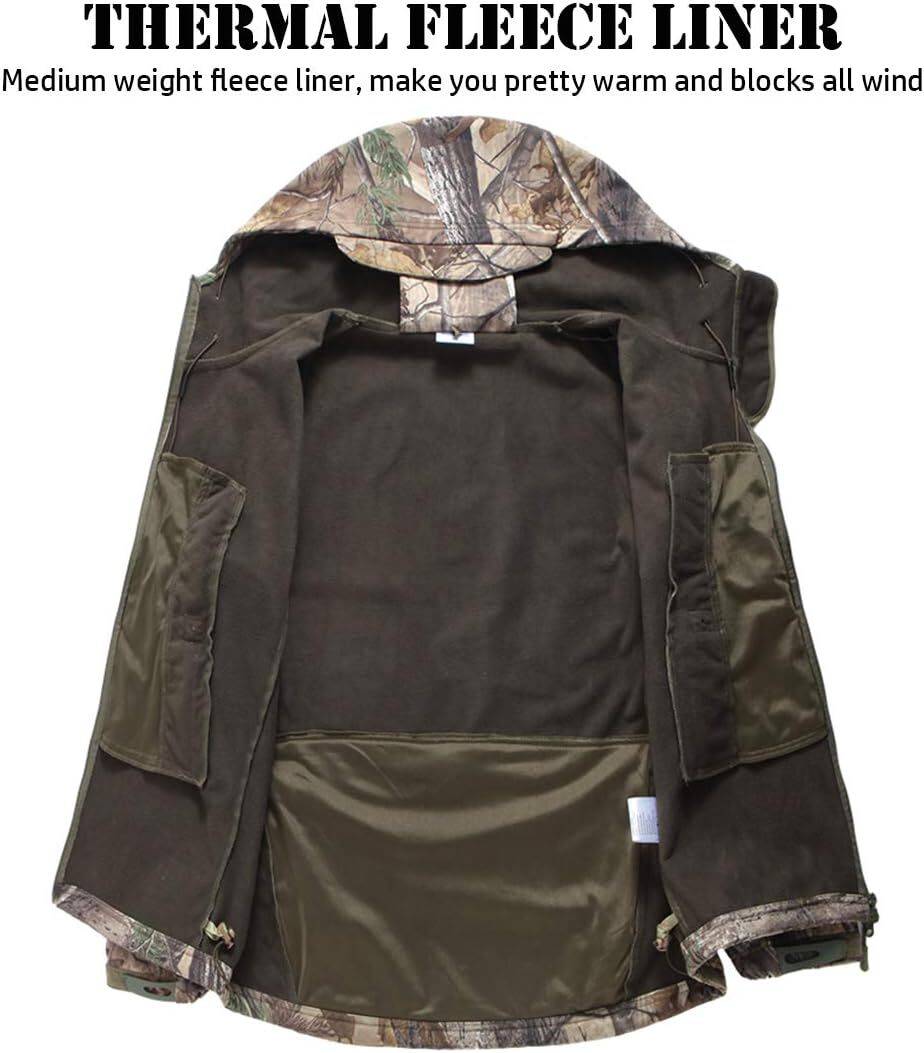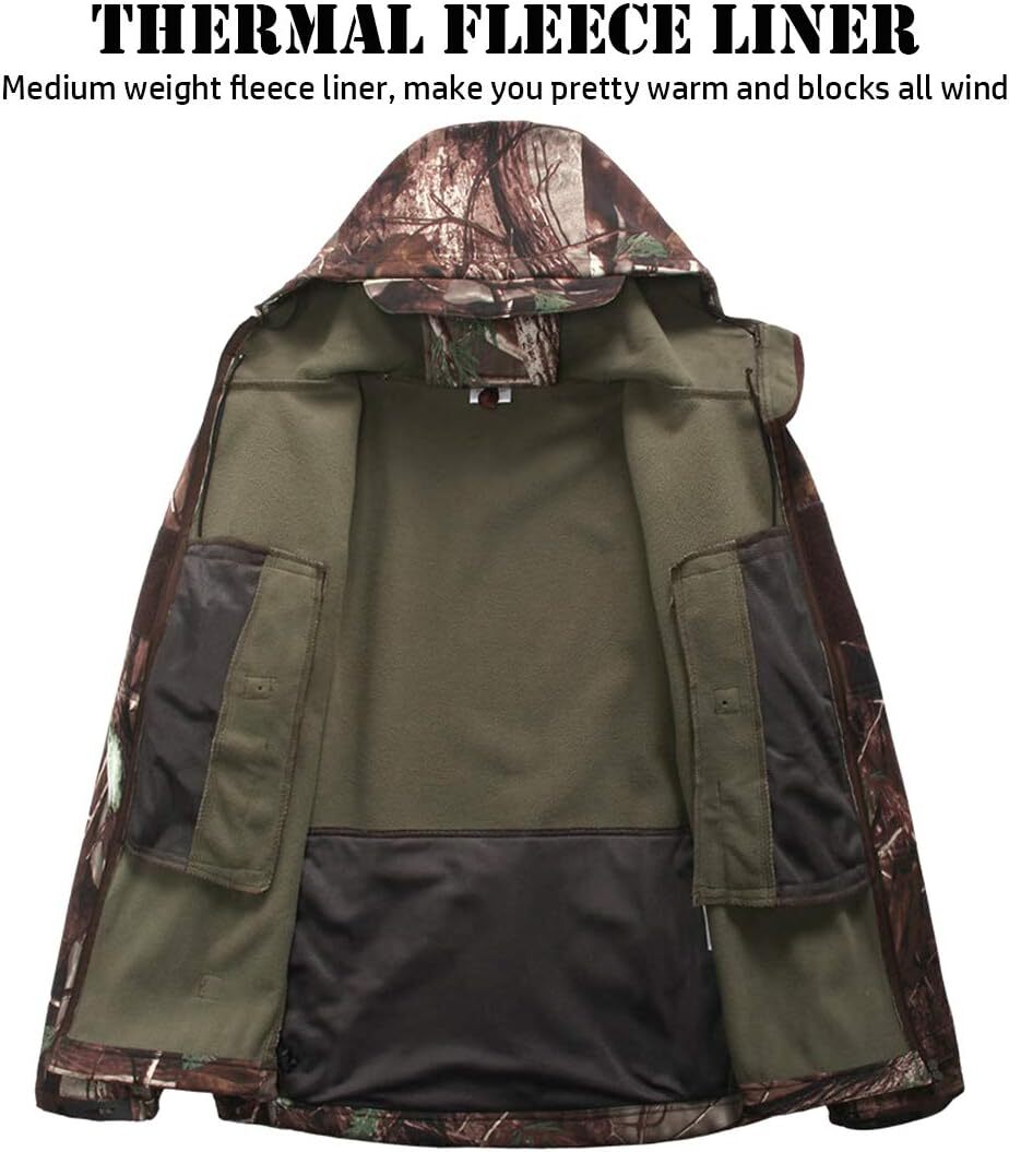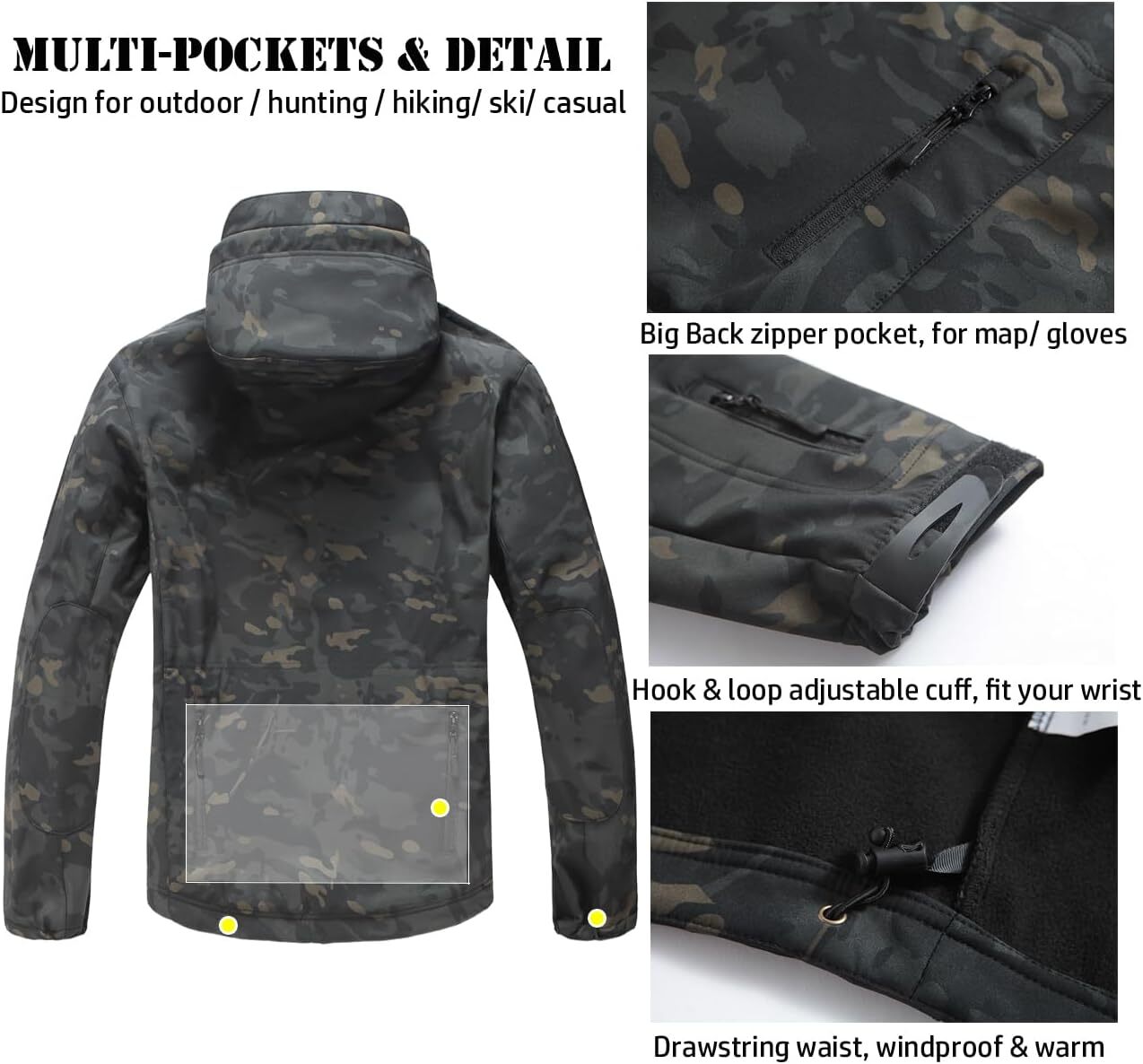 Men's Soft Shell Military Tactical Jacket Outdoor Camouflage Hunting Fleece Hooded Coat