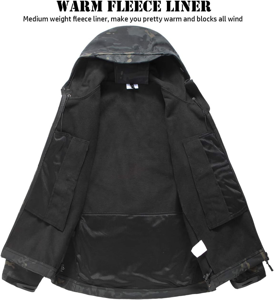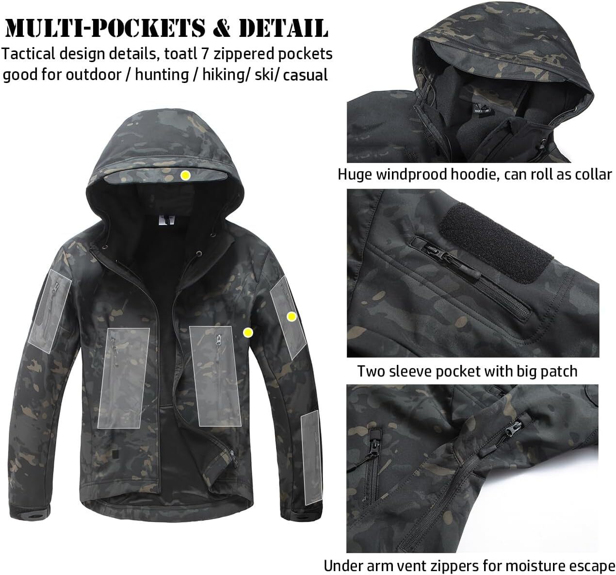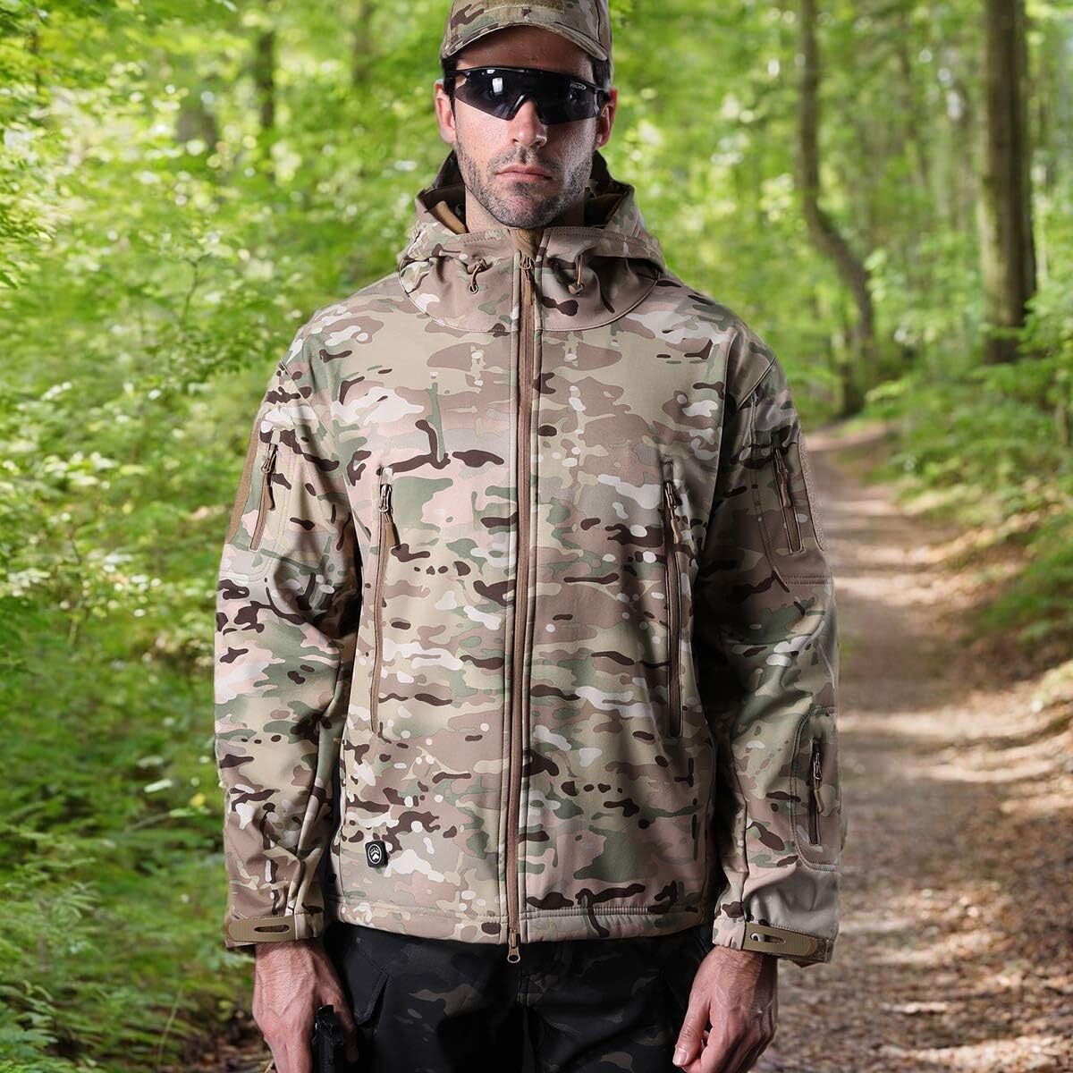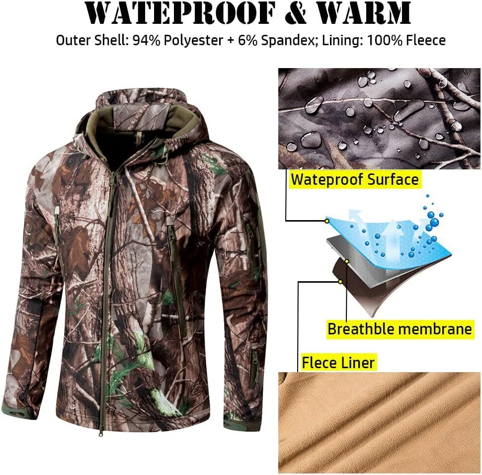 Men's Soft Shell Military Tactical Jacket Outdoor Camouflage Hunting Fleece Hooded Coat