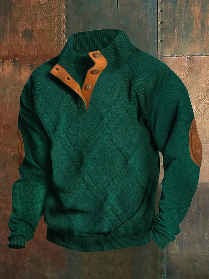 Men's St. Patrick's Day Jacquard Print Stand Collar Button-Down Sweatshirt