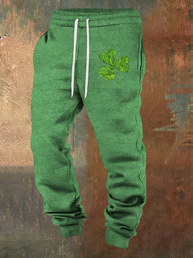 Men's St. Patrick's Day Printed Elastic Waist Tie-Up Trousers