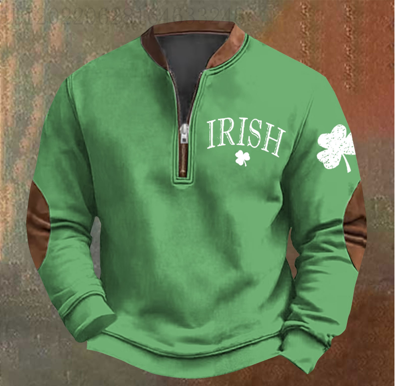 Men's St. Patrick's Day Retro Casual Zipper Sweatshirt Outdoor Casual Top