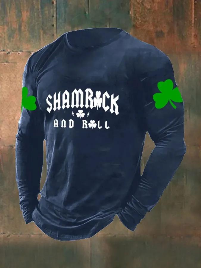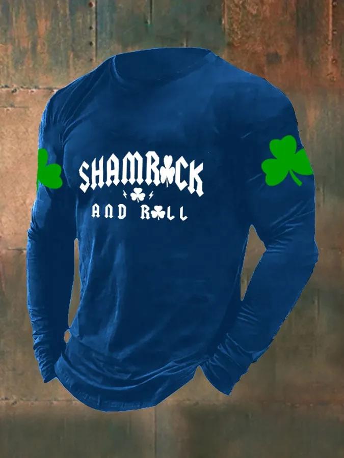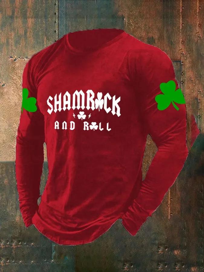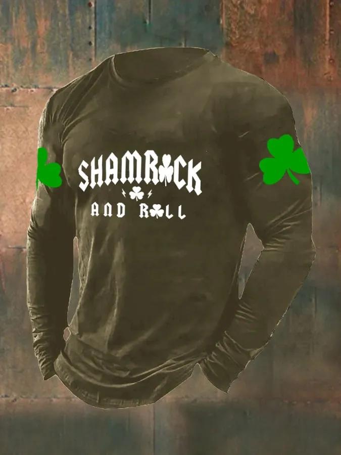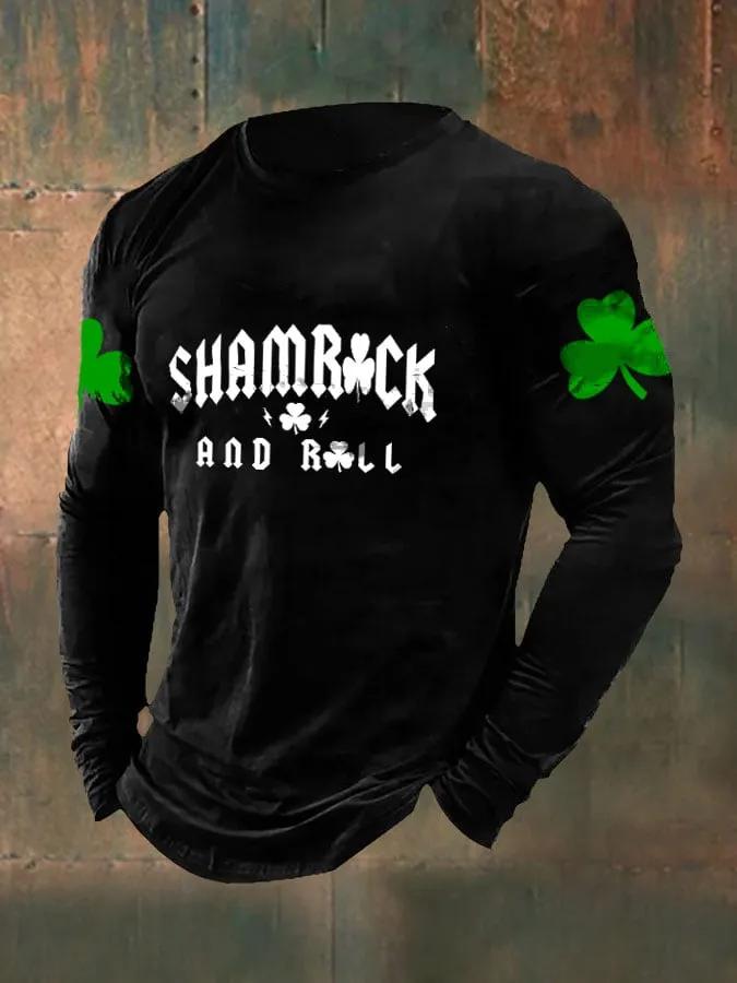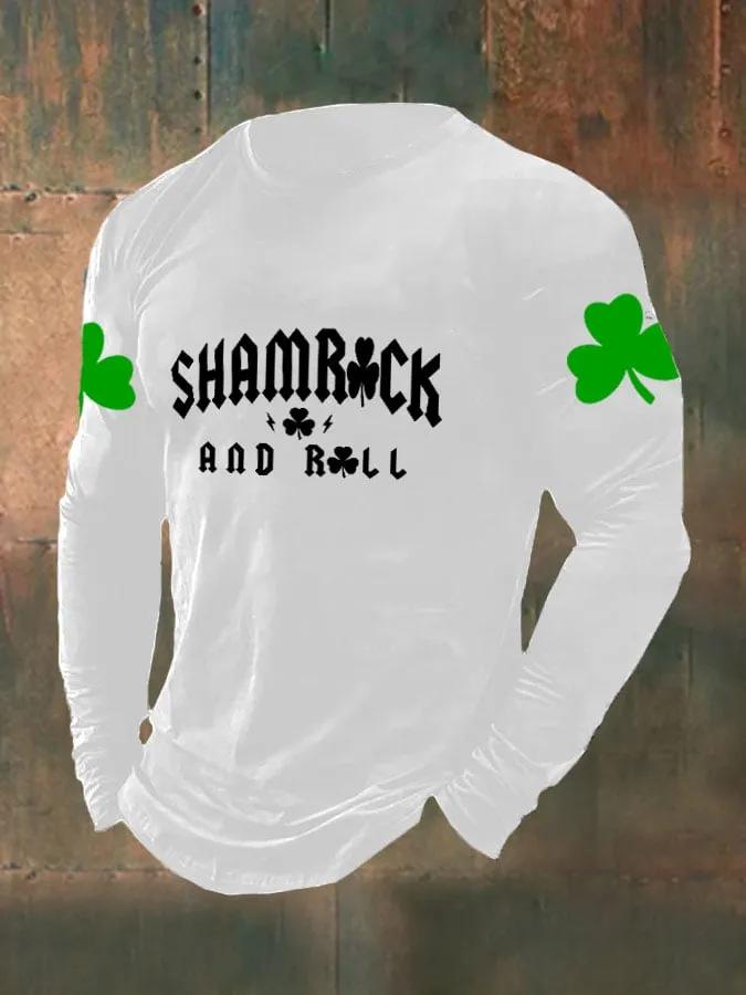 • Men's St. Patrick’s Day Shamrock And Roll Print Casual Long Sleeve T-Shirt