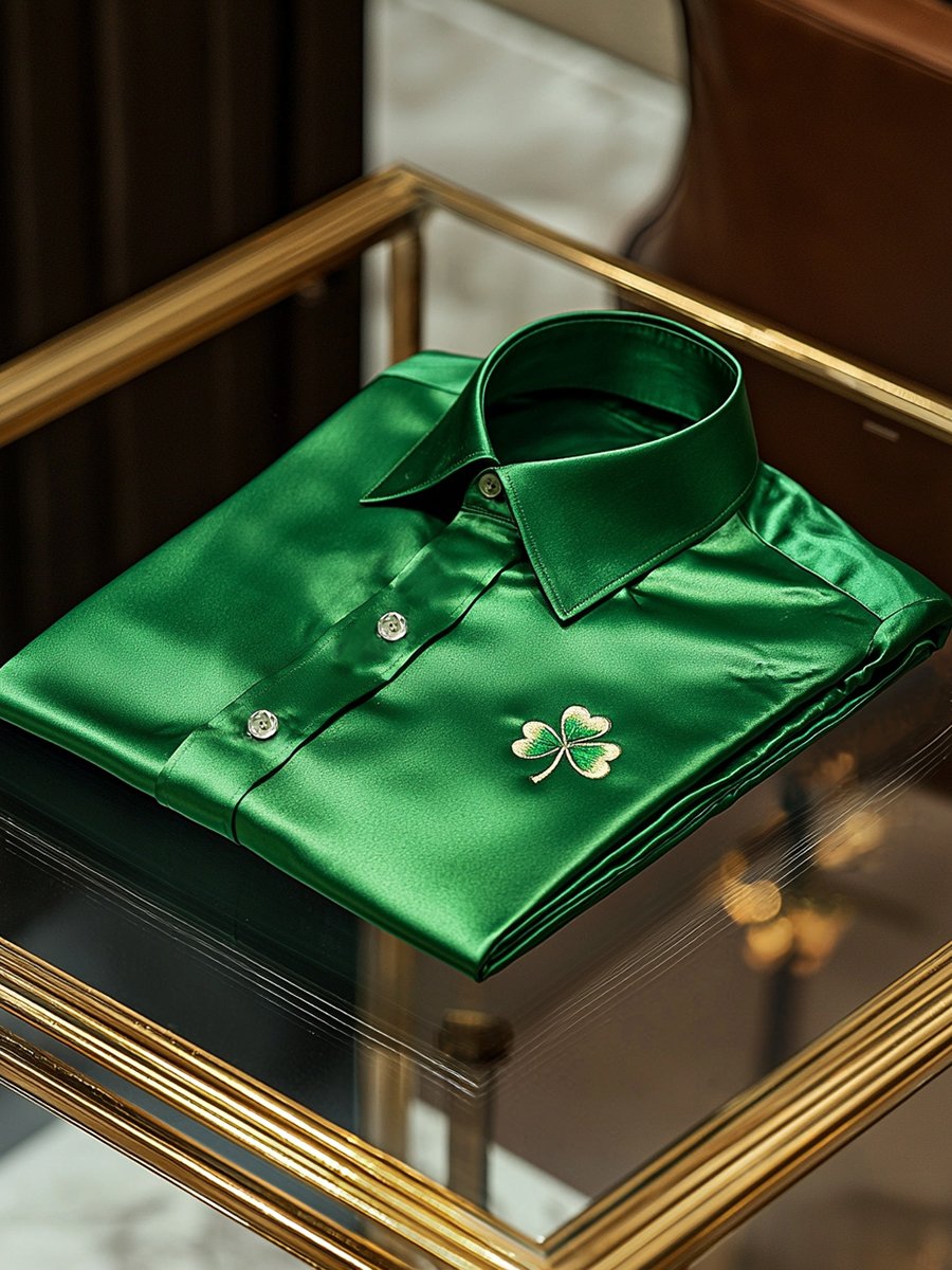 Men's St. Patrick's Satin Luxury Business Long Sleeve Shirt