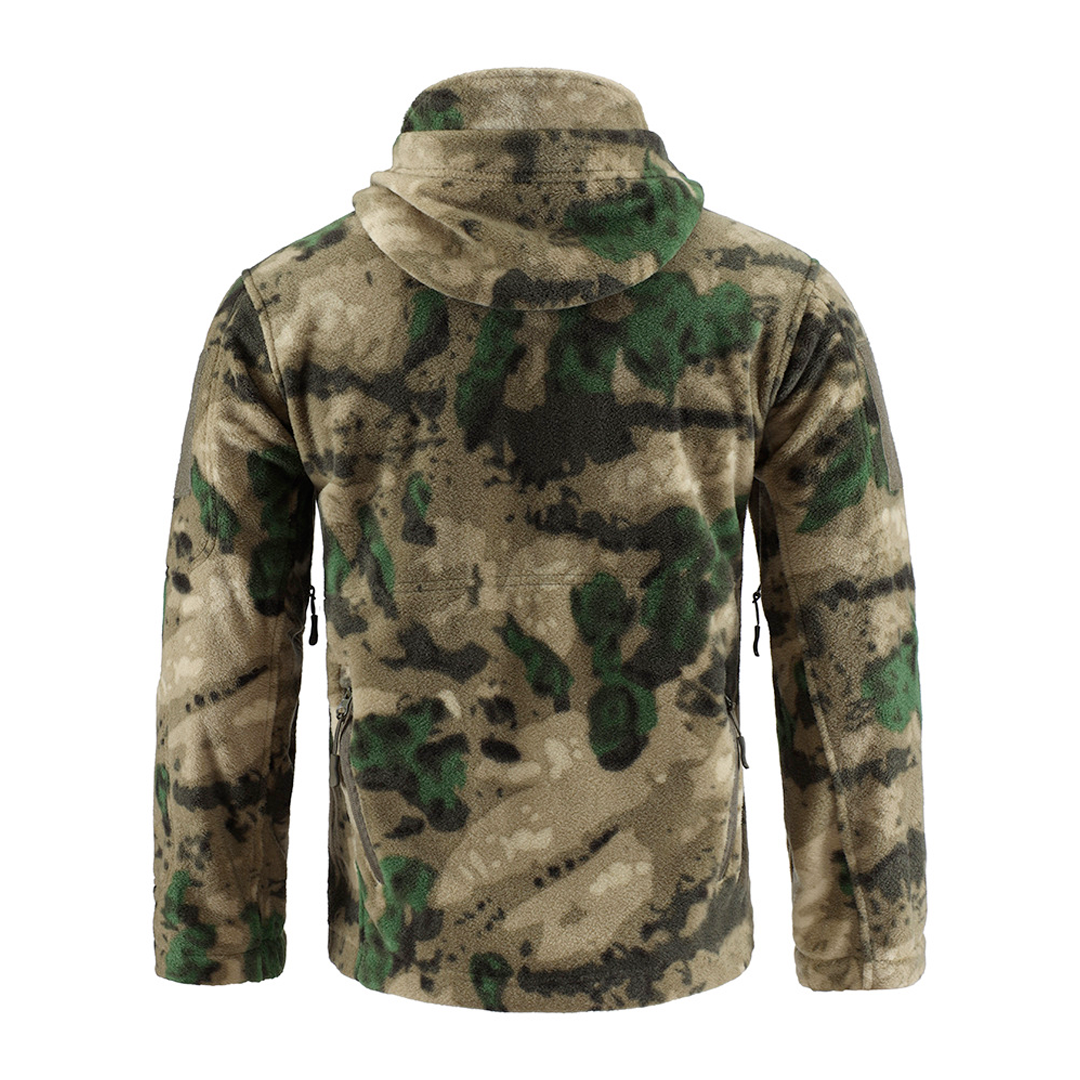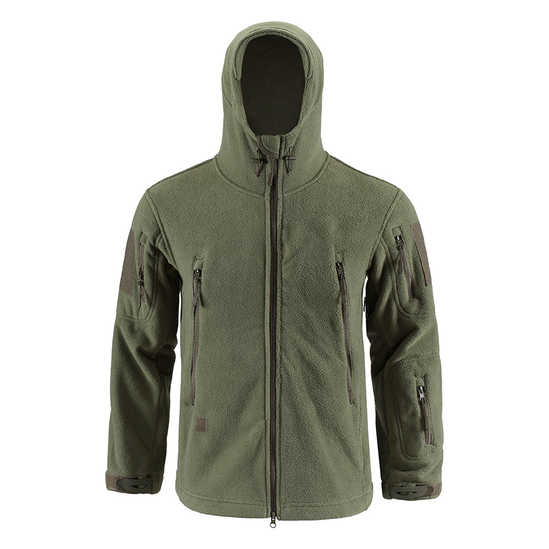 The Men's Warm Fleece Outdoor Jacket is designed for military training and various outdoor sports. Made of soft fleece, it ensures warmth and comfort during cold winter days. With a bi-swing back design, it allows for free range of motion, and the drawcord at the waist, bottom, and hood provides additional protection and warmth.This is a versatile and practical choice for individuals engaged in military training or outdoor activities.
