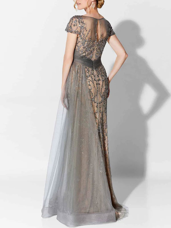 Mesh airy beaded party Mother Of The Bride Dress