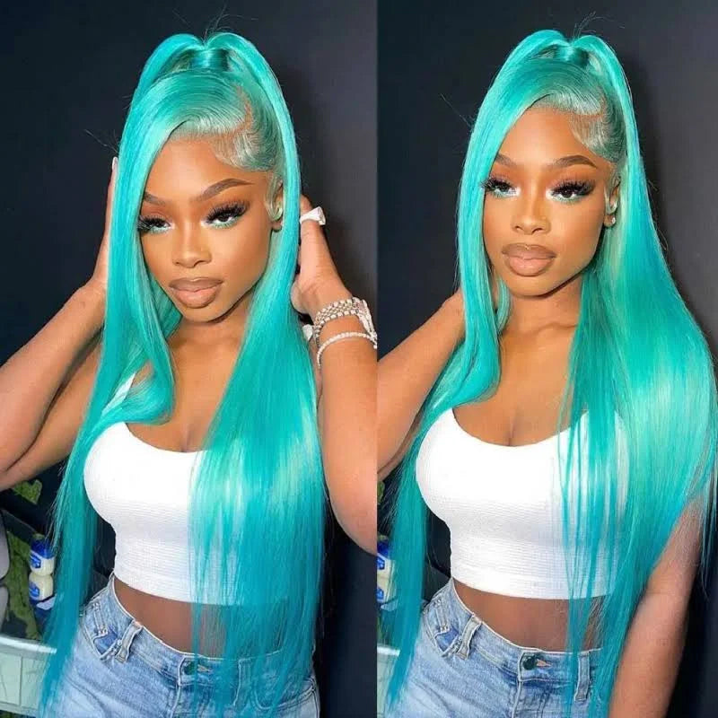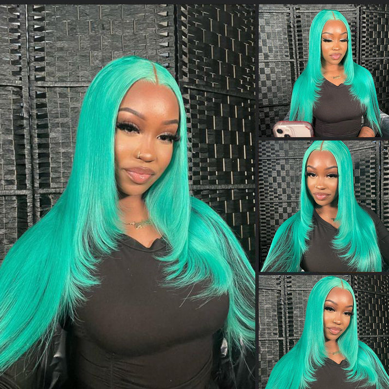 • Mint Green 13x6 Transparent Lace Wig 100% Virgin Human Hair
