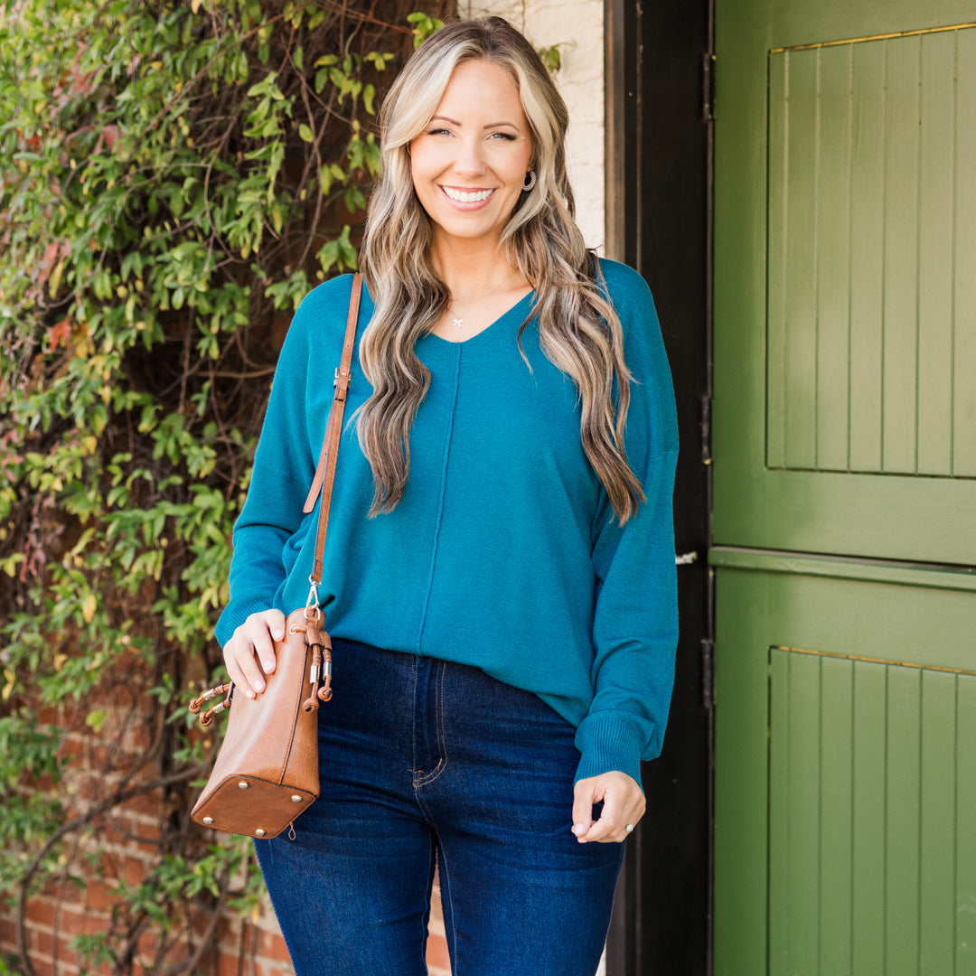 Miss Me Sweater, Heather Ocean Teal