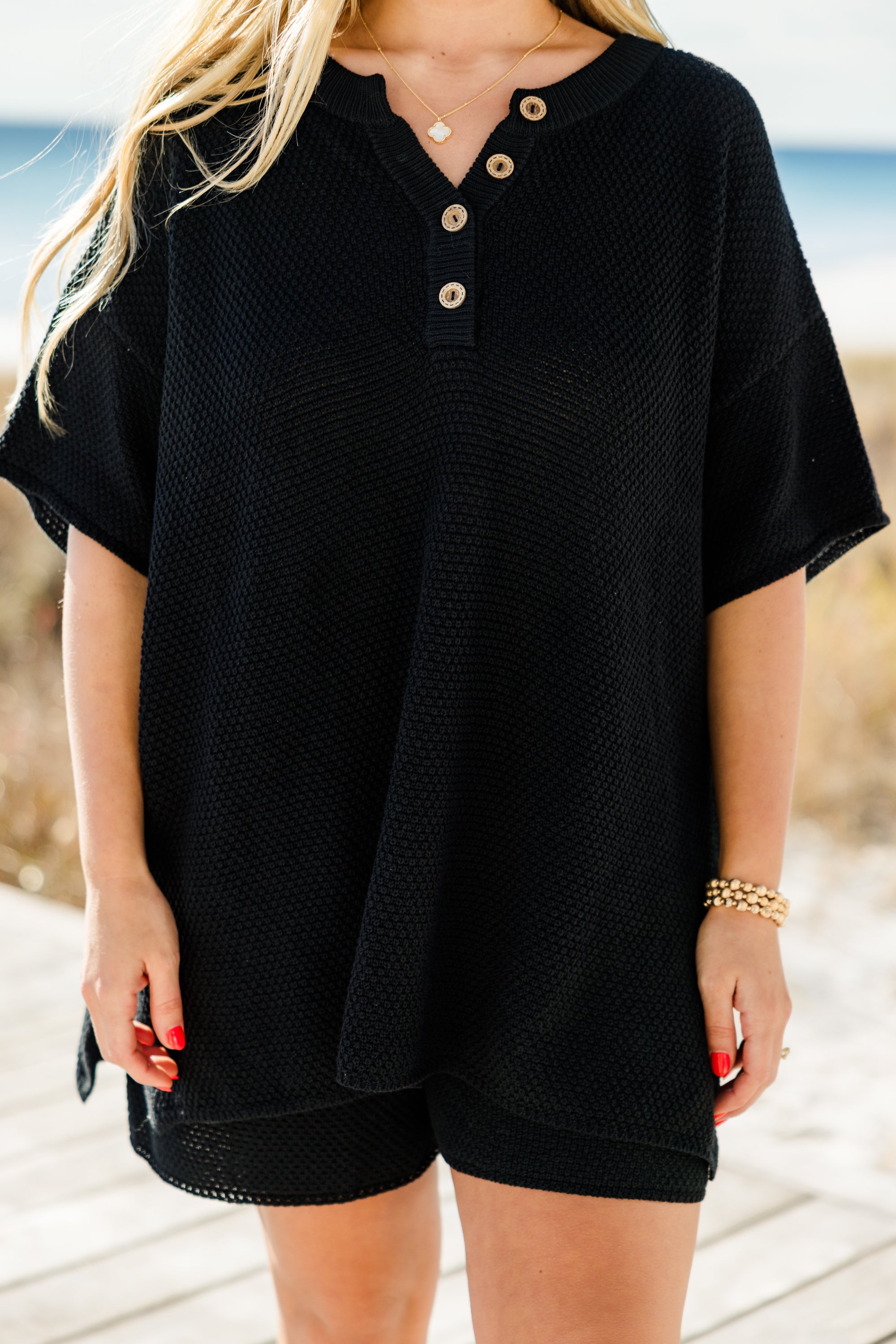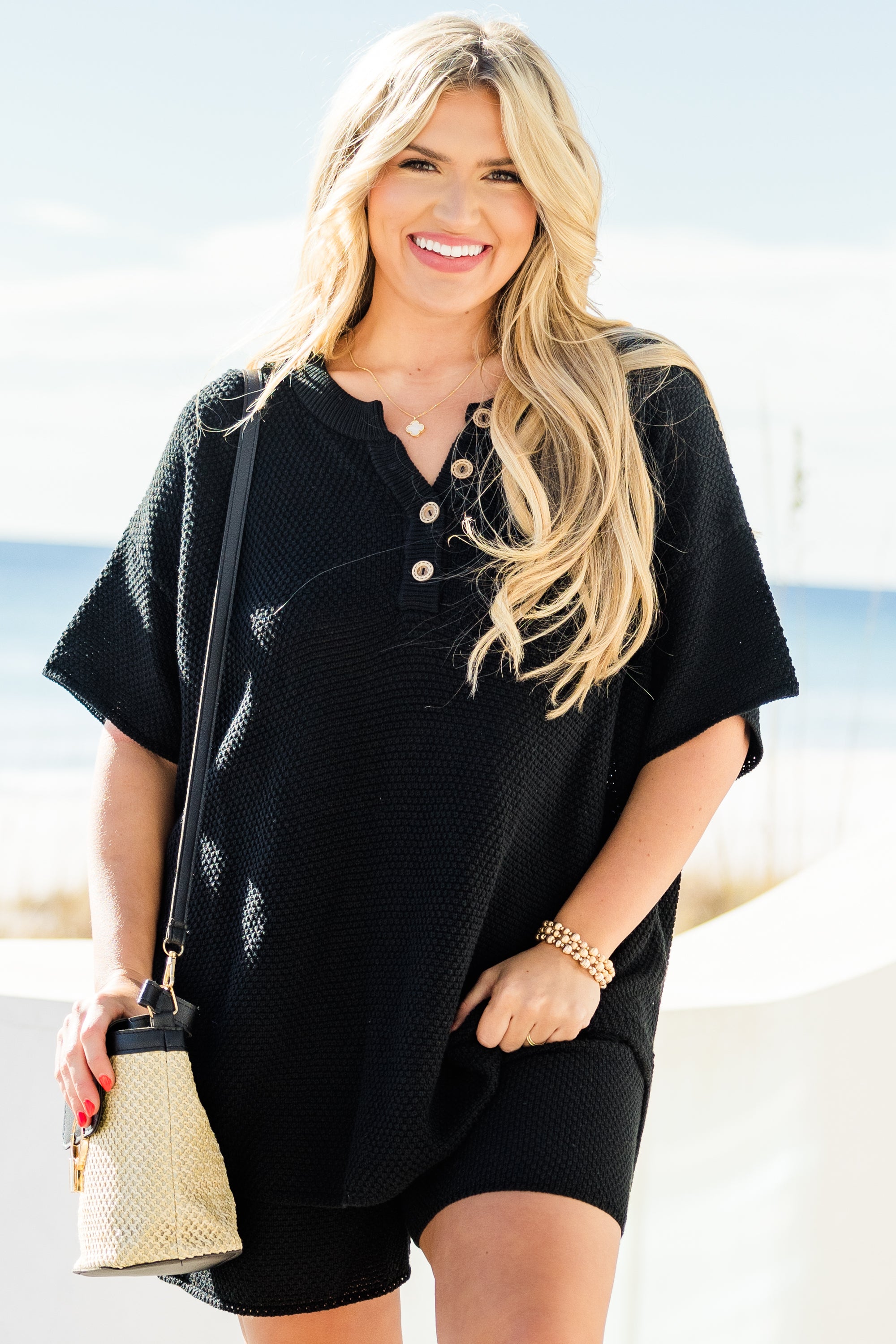 Indulge in paradise with this lightweight sweater set in black! The perfect combination of comfort and style, it pairs effortlessly with your favorite sneakers! Casual yet cute, the elastic waistband shorts add a trendy touch! Made of a soft sweater knit material, we're beyond in love with this set!