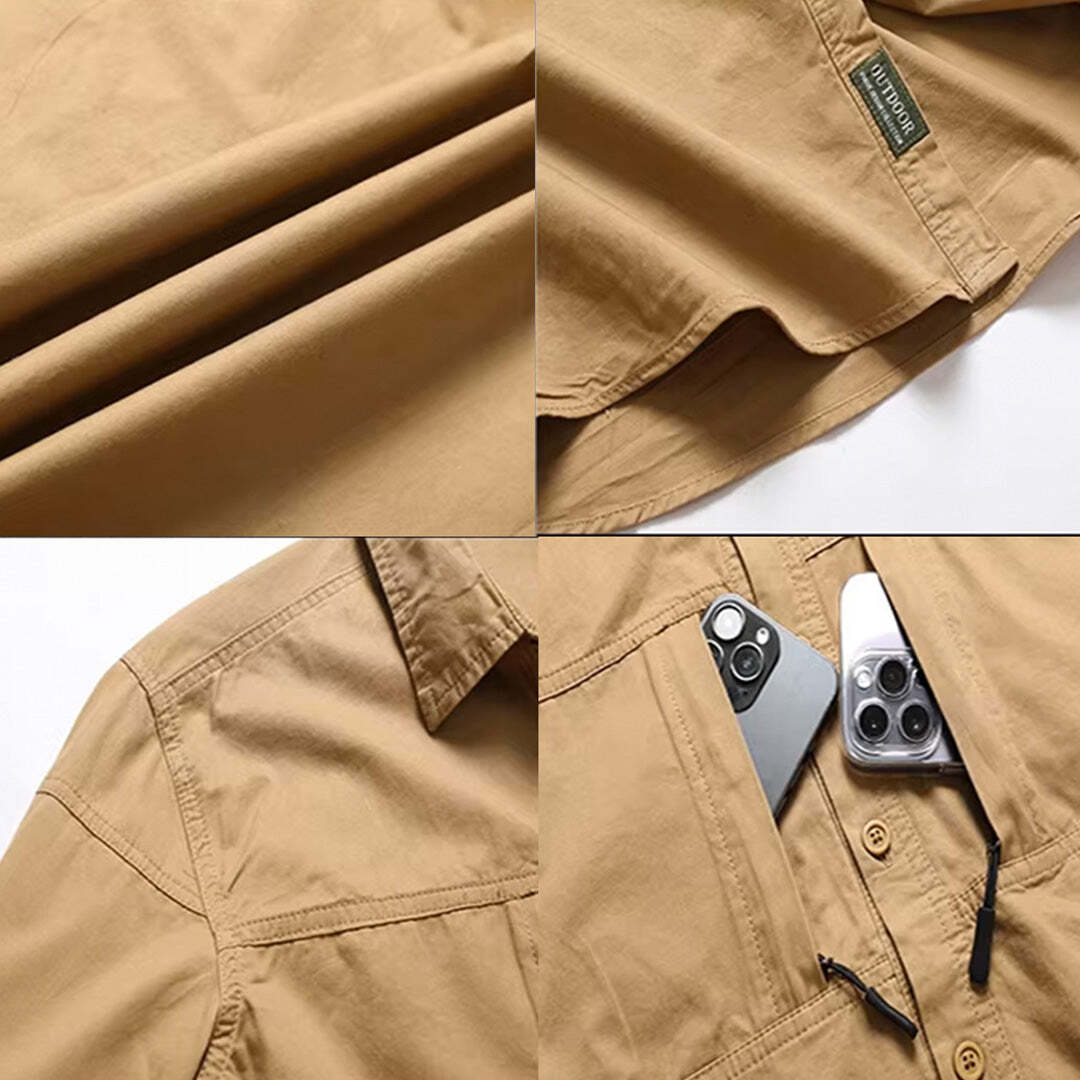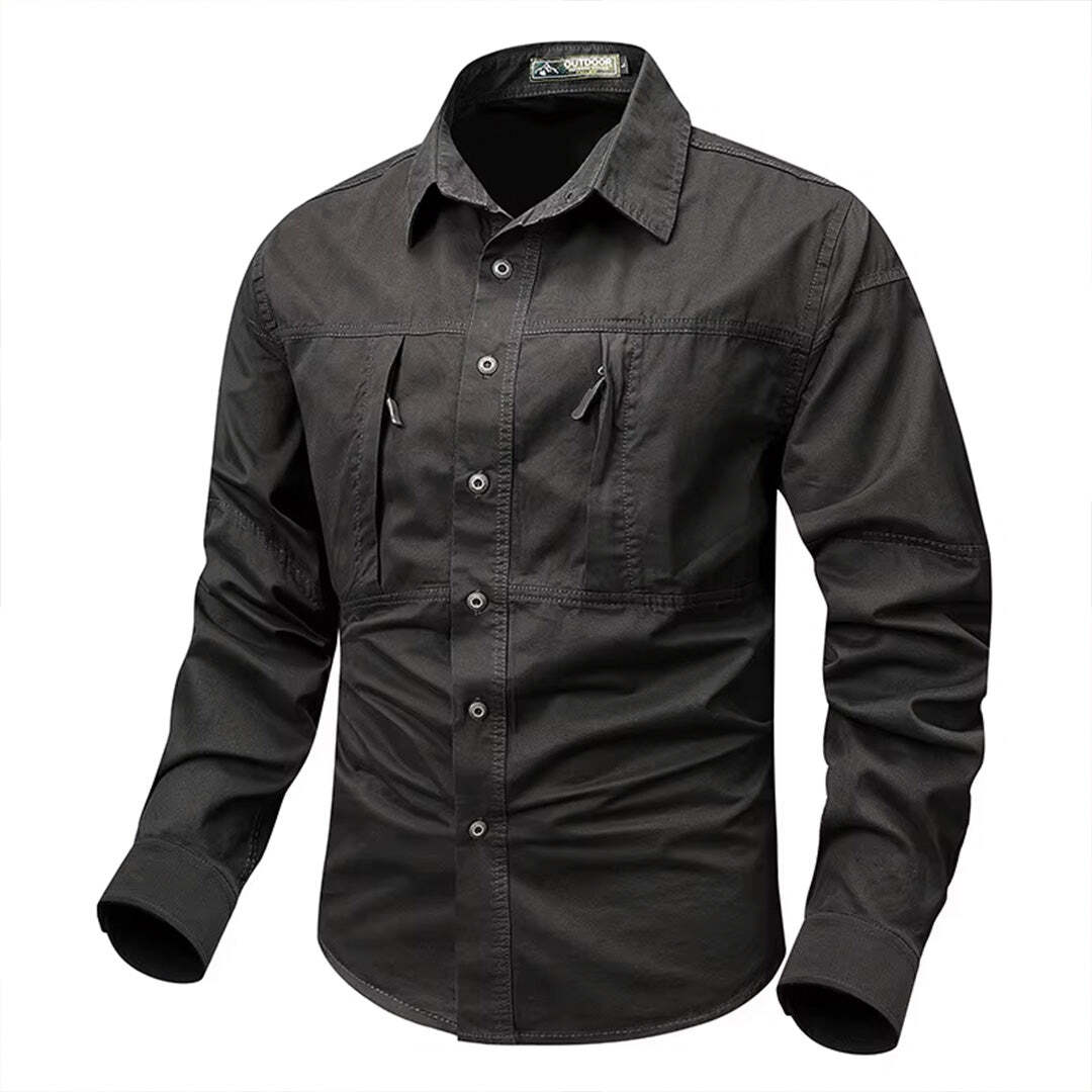 Introducing the Outlander Shirt – a rugged yet comfortable shirt designed for the outdoorsman. Made from 100% cotton twill canvas fabric, this casual shirt offers both durability and breathability, ensuring comfort during any activity. Featuring a turn-down collar and functional pockets, the Outlander Shirt seamlessly blends a tactical edge with a casual, stylish look. Its single-button closure adds a touch of classic style, making it perfect for both outdoor adventures and everyday wear.