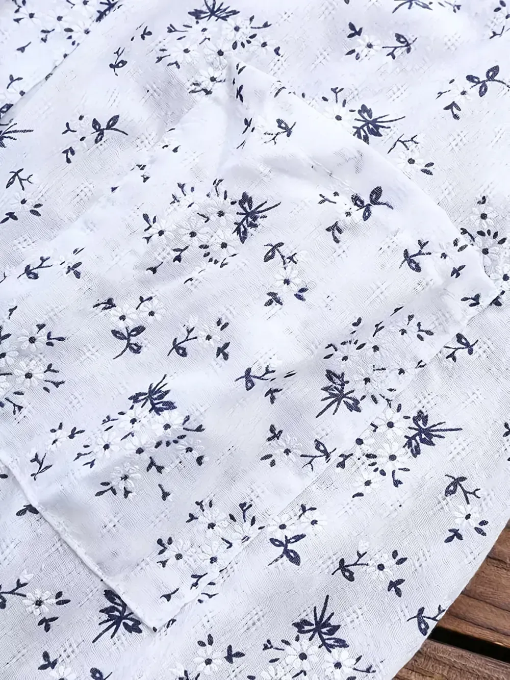 Plus Size Cotton Floral Print Long Sleeve Midi Top, Women's Plus Casual Button Front T-shirt
