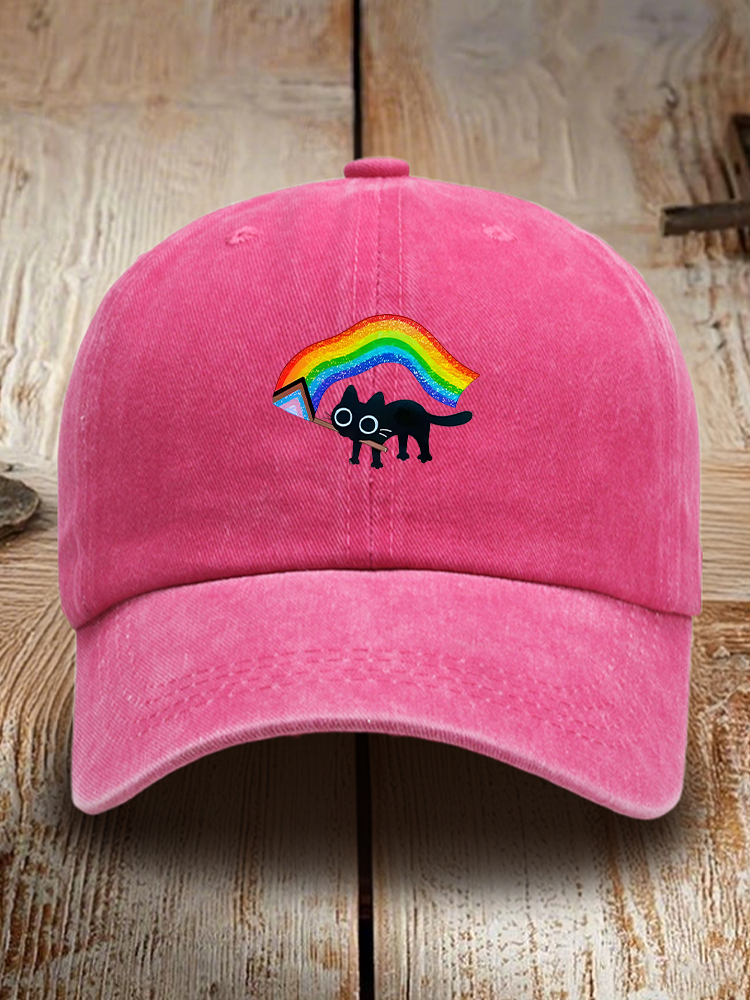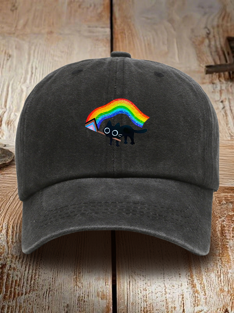 Proud Moon Kitten Rainbow Flag Printed Baseball Cap