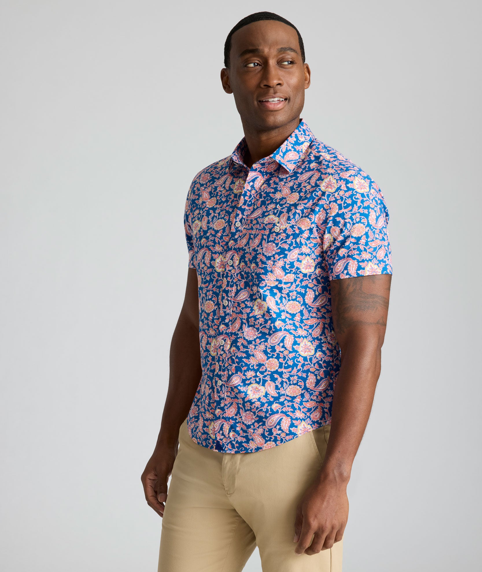Introducing our latest innovation designed for sunny summer days. We made this breathable style from a soft cotton-linen blend that’s finer and lighter than traditional fabrics, so you’ll feel relaxed the second you put it on. It’s lightweight enough for even the hottest days this season, with breezy short sleeves and a fun floral pattern that’s a must-have for afternoons by the water. Just add our Chino Shorts for a laid-back look that will take you anywhere.