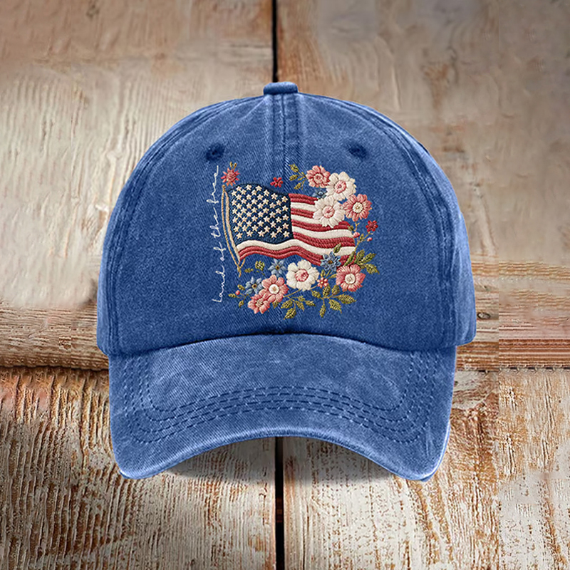 Retro Independence Day Flowers Land Of The Free Print Baseball Cap