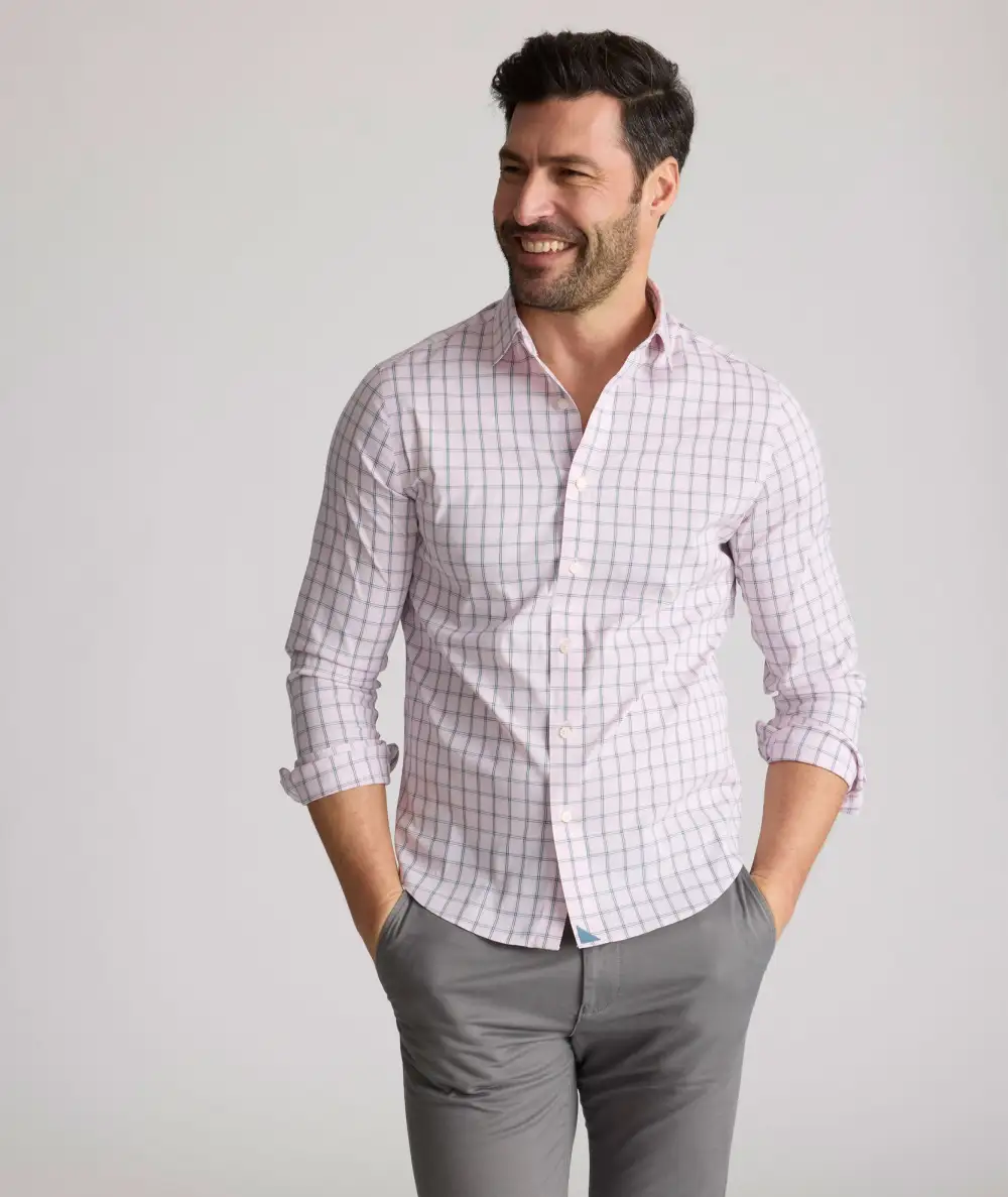 Finally, a shirt that combines the crisp feel of Wrinkle-Free cotton with the power of Performance. It’s the best of both worlds—breathable, stretchy, and sweat-wicking, all while keeping that polished look you love. Even better? It’s machine washable, so you can skip the dry cleaner. We designed this classic windowpane pattern to easily pair with a sharp Italian sport coat or stand out on its own. And to top it off, we infused it with BRRR° micro-mineral cooling technology to keep you comfortable all day long.