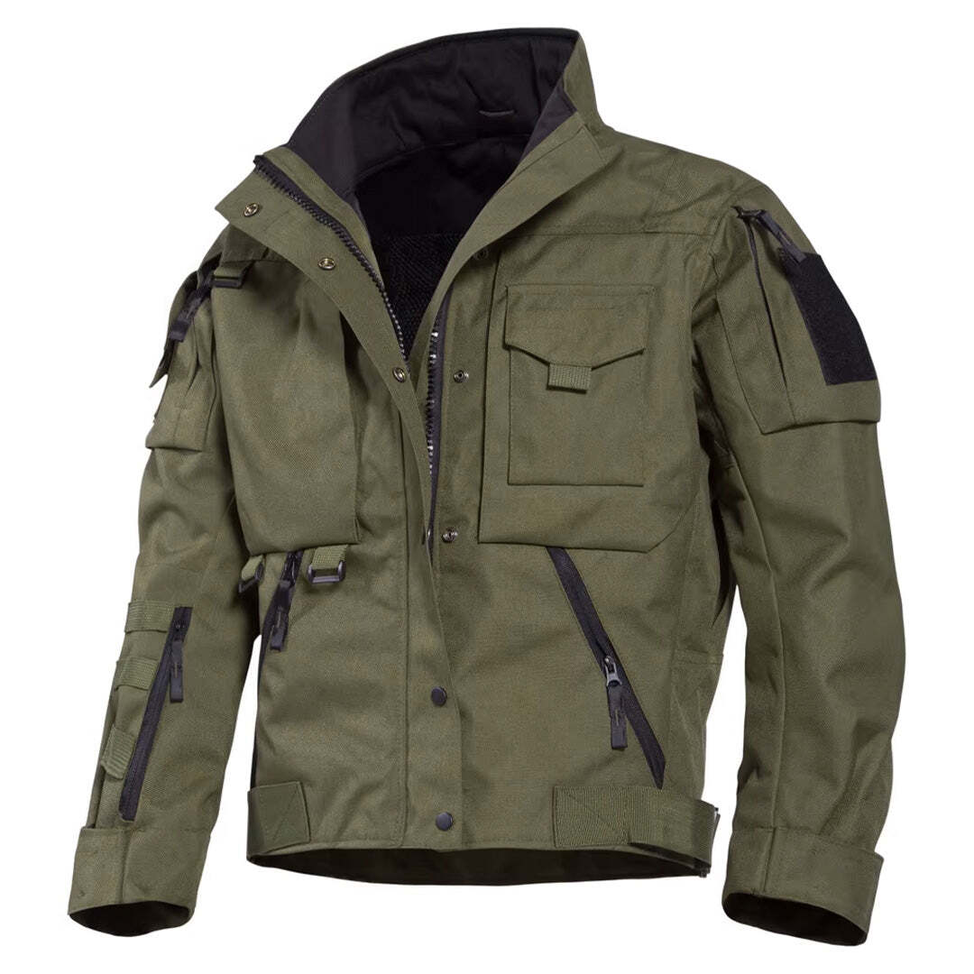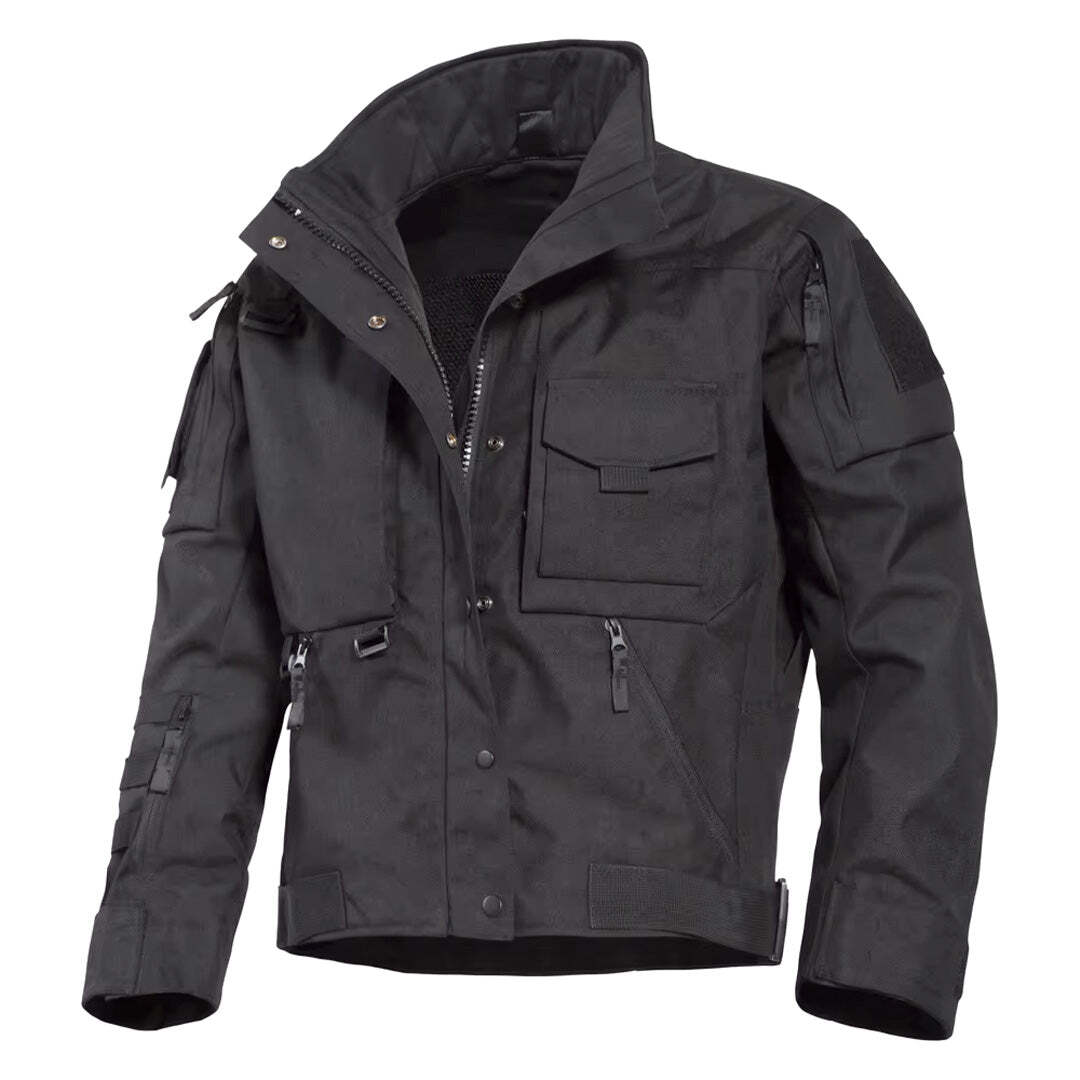 Introducing the Rider Jacket – a rugged, waterproof hard shell jacket tailored for motorcycle riding and outdoor adventures. Crafted with a thick, woven fabric for enhanced durability, this jacket offers windproof and waterproof protection to keep you warm and dry during autumn rides. Equipped with four functional pockets, the Rider Jacket ensures ample storage for your essentials. With its versatile design, regular fit, and full-zip closure, this jacket is built for those who demand high performance and tactical style.