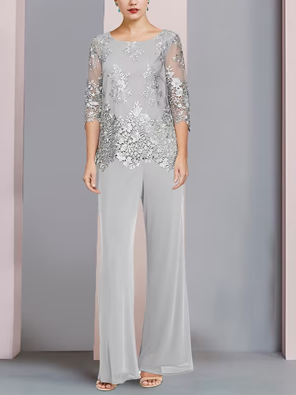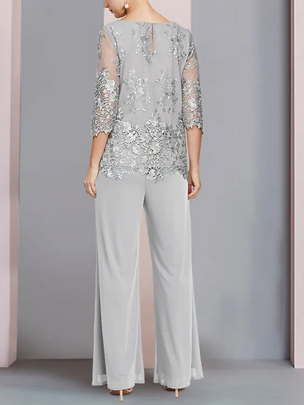Round Neck Lace Top And Trousers Two-piece Suit
