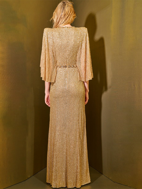 Round Neck Sequined Solid Color Maxi Dress