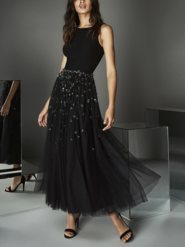 Round Neck Sleeveless Solid Color Printed Maxi Dress