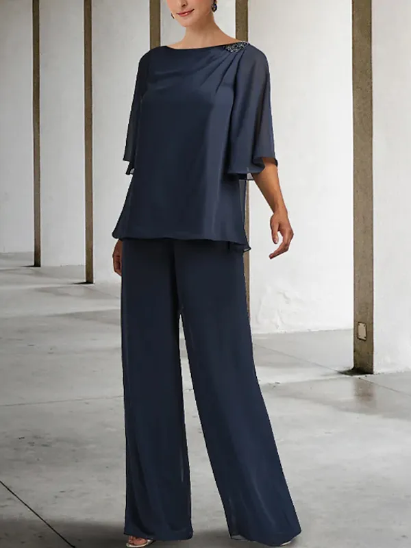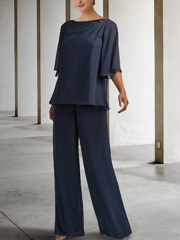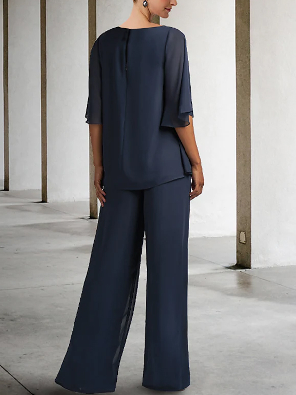 Round Neck Solid Color Top And Trousers Two-piece Suit