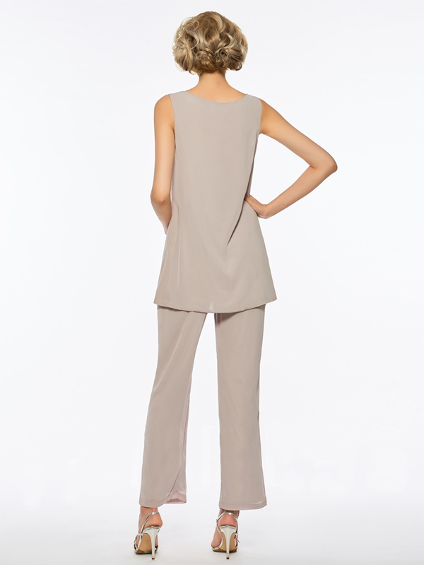 Round neck solid color vest long sleeve top trousers three-piece suit