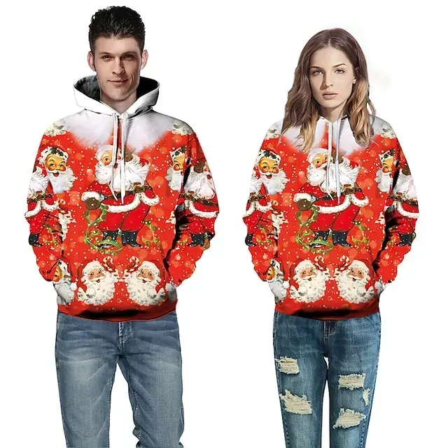 Santa Claus Ugly Christmas Sweater / Sweatshirt Hoodie Pullover Print Front Pocket Graphic Hoodie For Men's Women's Unisex Adults' 3D Print 100% Polyester Party