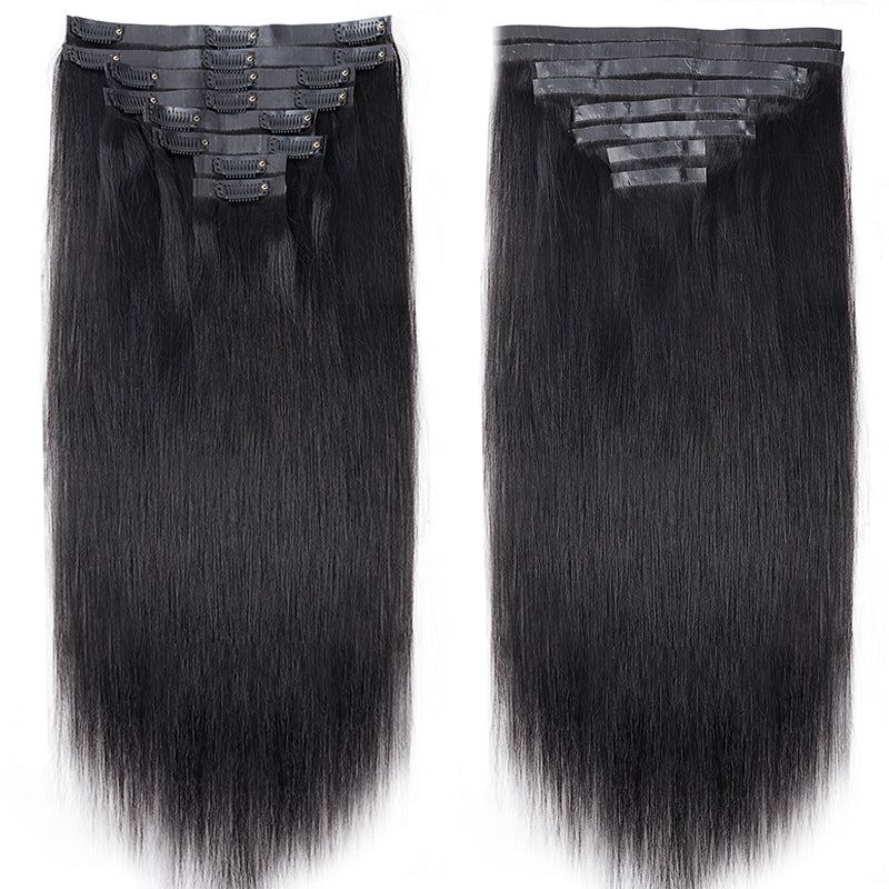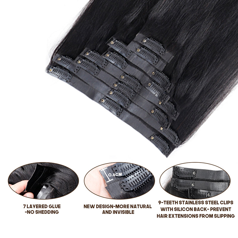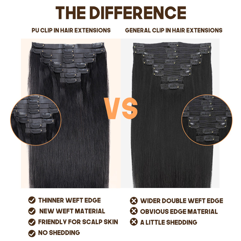 Seamless Clip In Hair Extensions Silky Straight PU Weft Clip Ins For Black Women Remy Human Hair 8pcs With 18 Clips