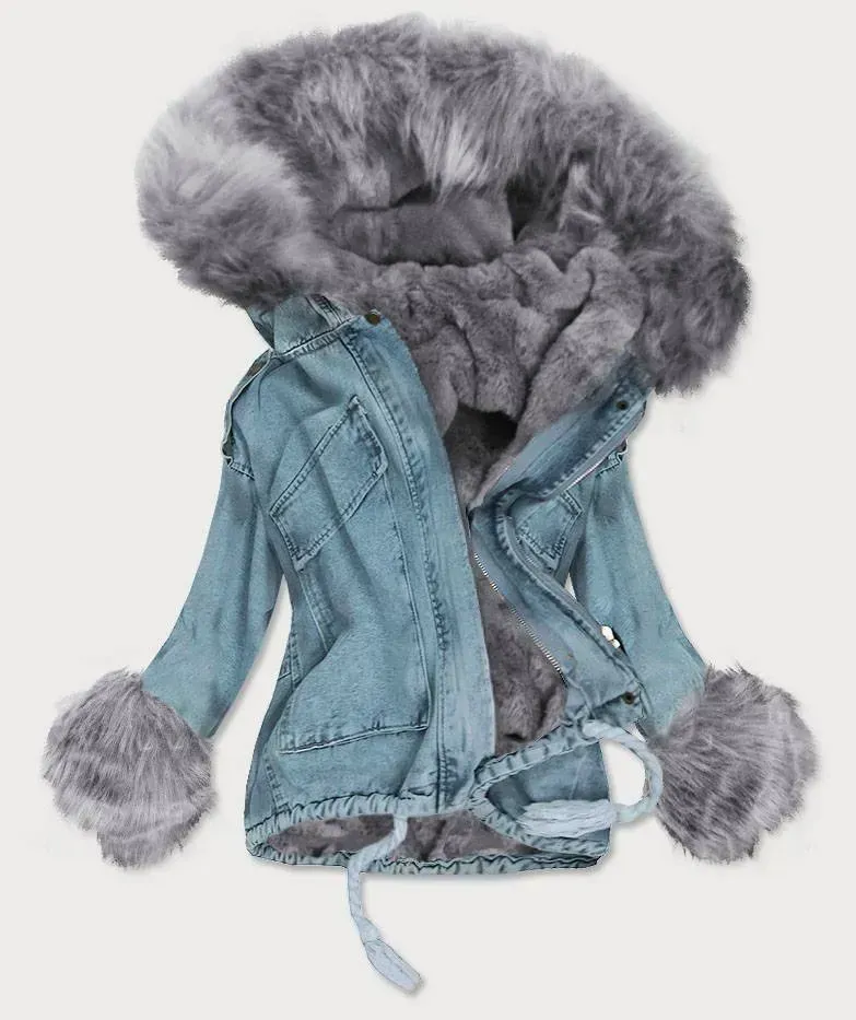 Short denim jacket with fur A