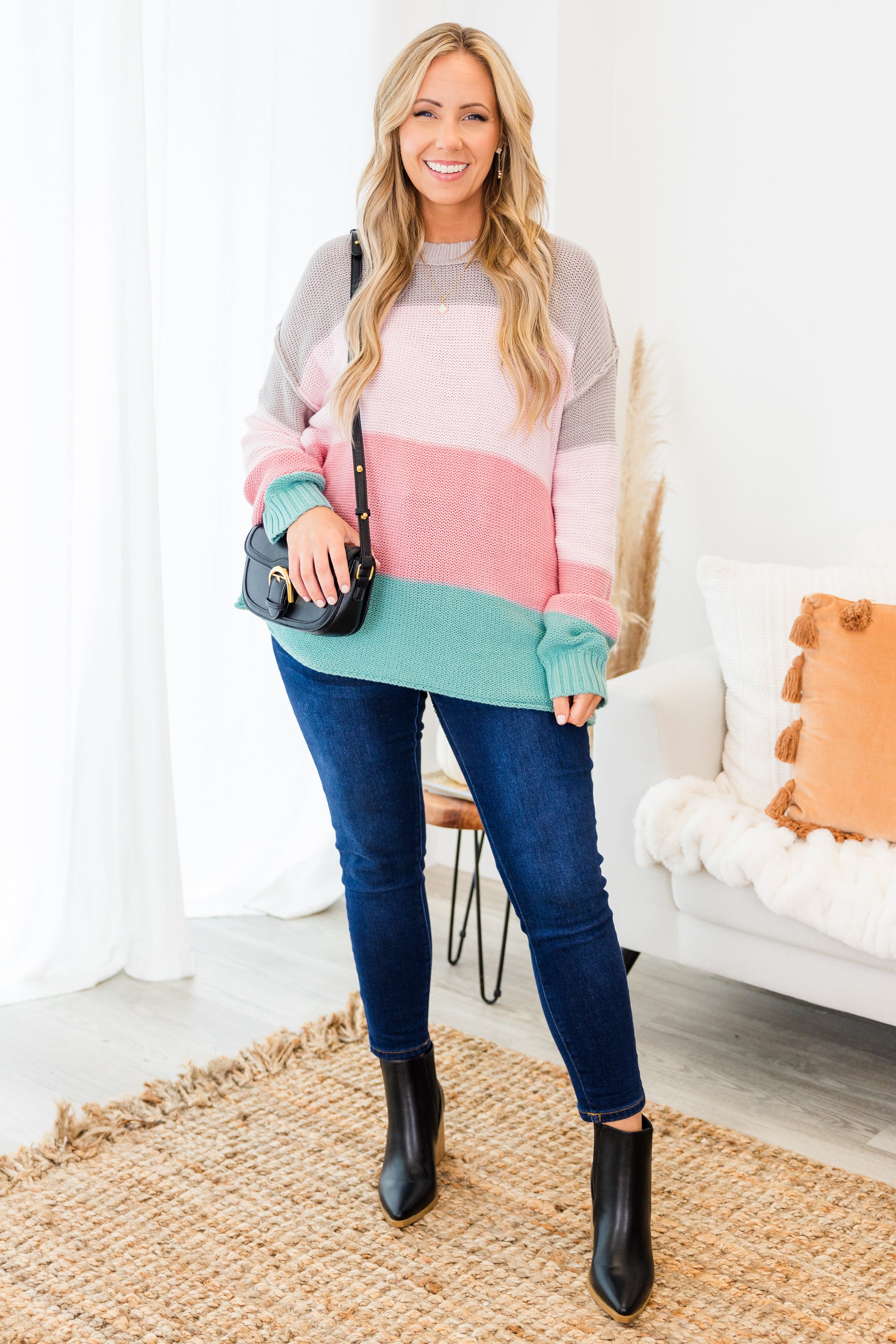 Soft Hues Sweater, Blush-Sage