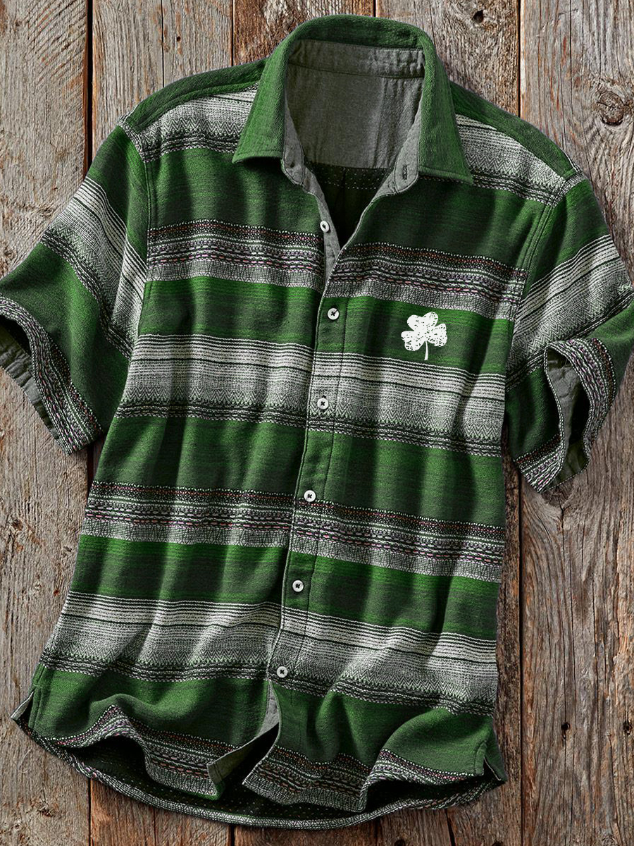 St. Patrick's Day Green Striped Shamrock Art Print Shirt
