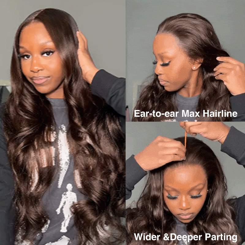 • Affordable #2 Dark Brown Body Wave 13x6 Full Lace Frontal Human Hair Wigs