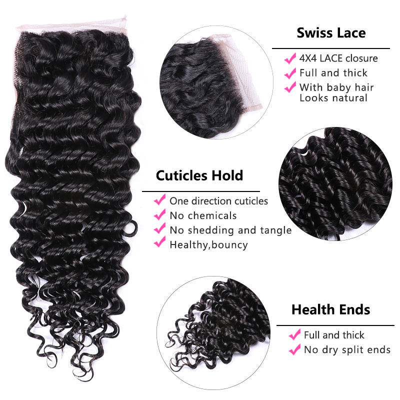 • Sterly Undetectable HD Lace Closure 4x4 with 3 Bundles Deep Wave With Baby Hair